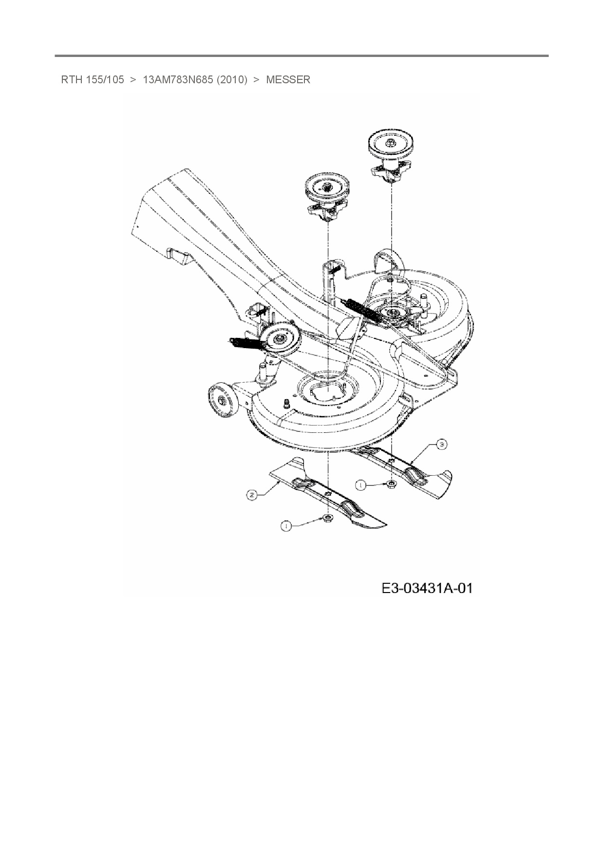 Ersatzteile für Rasentraktor Sunline RTH 155/105 aus der Zeichnung Messer: