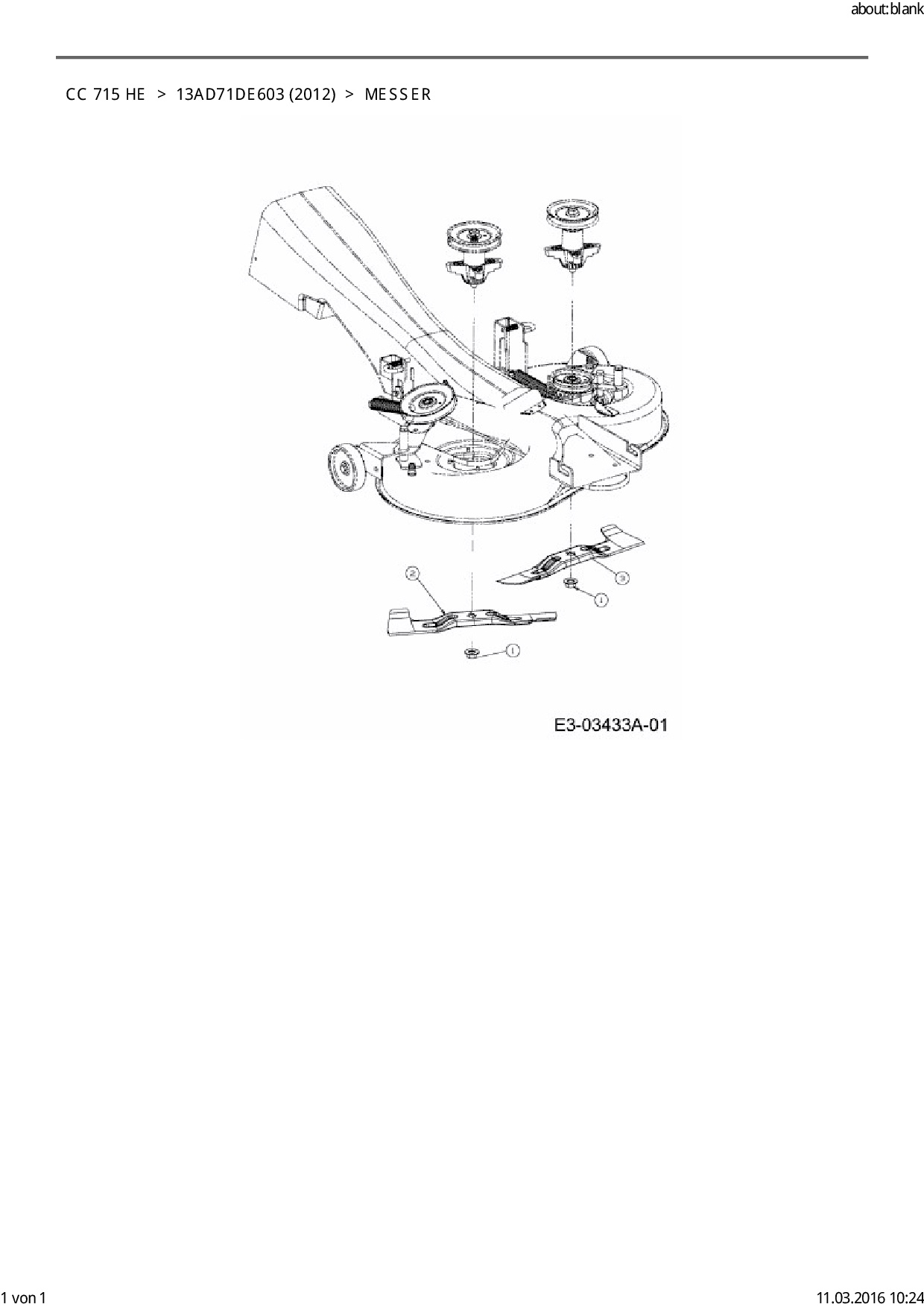 Ersatzteile für Rasentraktor Cub Cadet CC 715 HE aus der Zeichnung Messer: