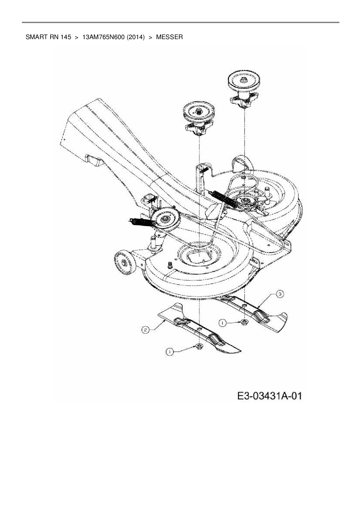 Ersatzteile für Rasentraktor MTD Smart RN 145 aus der Zeichnung Messer:
