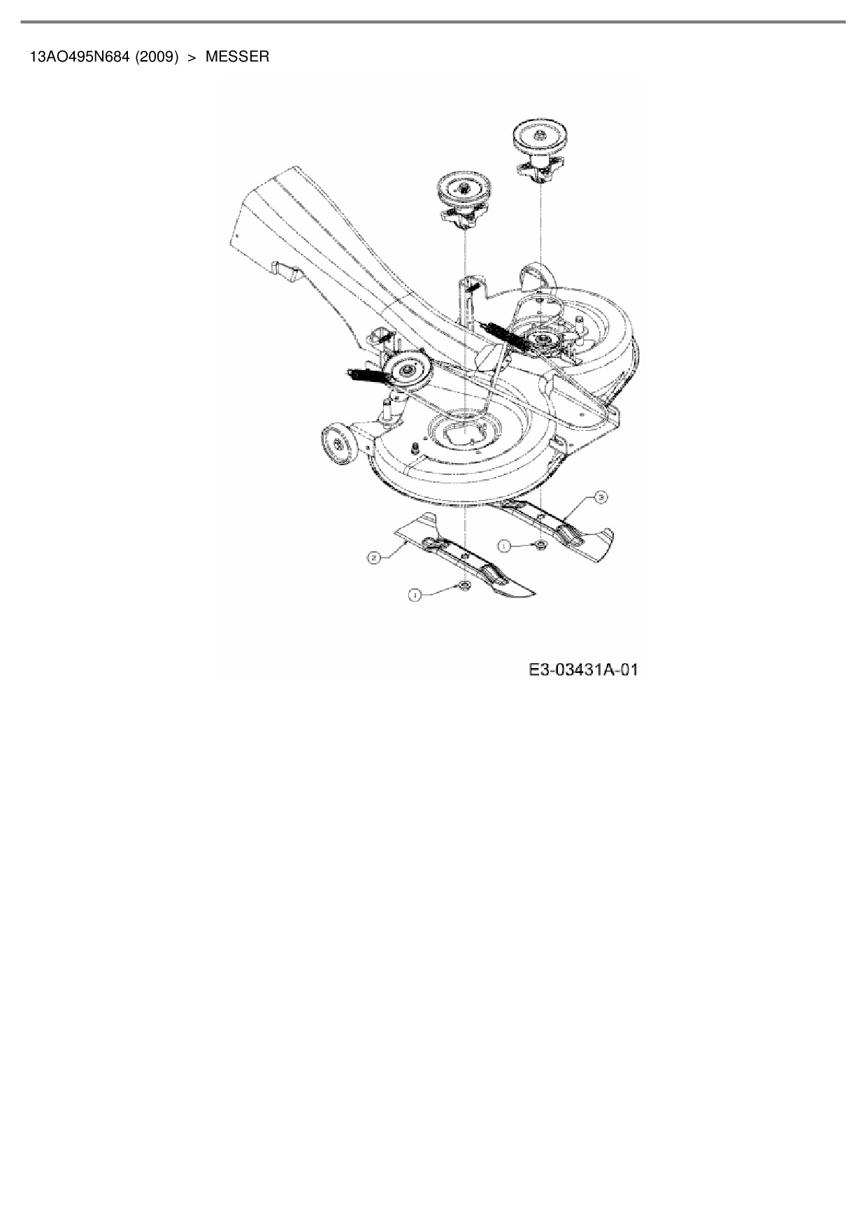 Ersatzteile für Rasentraktor Bolens BL 185/105 H aus der Zeichnung Messer: