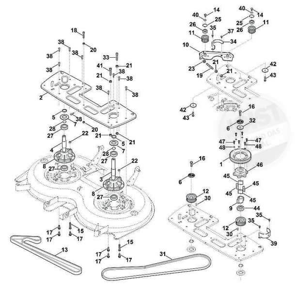 Hier finden Sie alle Ersatzteile von Stihl Aufsitzmäher RT 6112.0 ZL der Zeichnungsgruppe Messerantrieb: