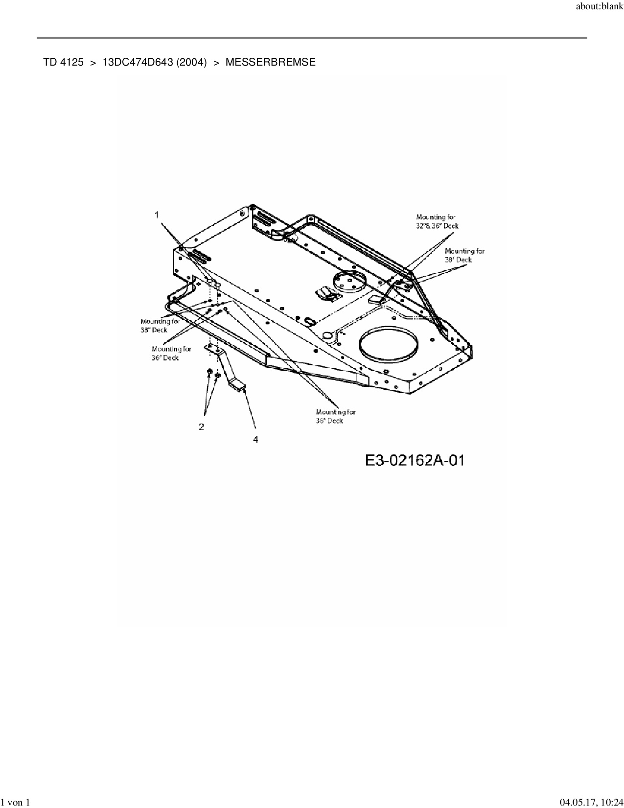 Ersatzteile für Rasentraktor Yard-Man TD 4125 aus der Zeichnung Messerbremse: