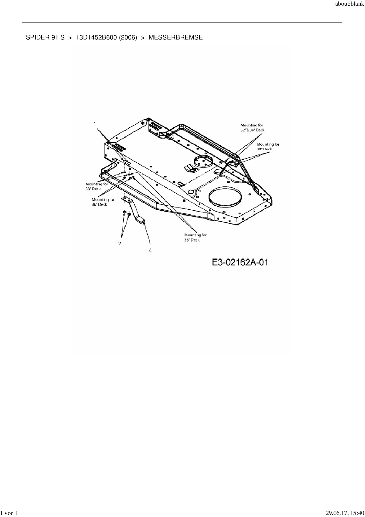 Ersatzteile für Rasentraktor MTD Spider 91 S aus der Zeichnung Messerbremse: