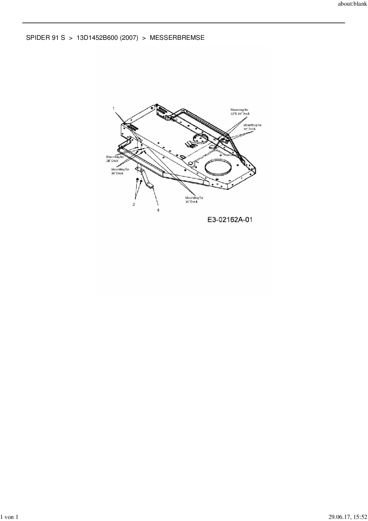 Ersatzteile für Rasentraktor MTD Spider 91 S aus der Zeichnung Messerbremse: