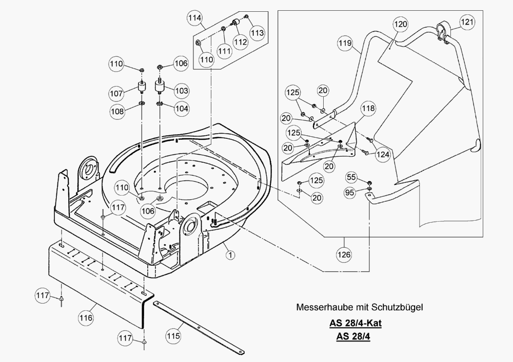 Hier finden Sie alle Ersatzteile von AS-Motor Allmäher AS 28 2T und AS 28/4-Kat ab FNr. 020114040001 aus dem Zeichnungsblatt Messerhaube + Schutztuch:
