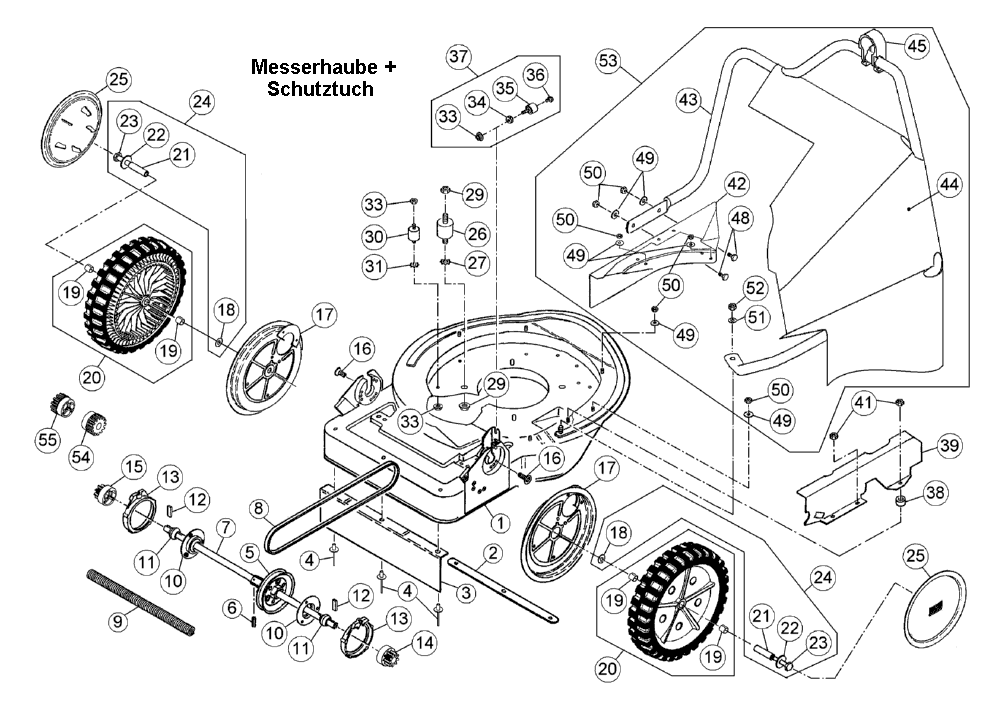 Hier finden Sie alle Ersatzteile von AS-Motor Allmäher AS 21 2T und AS 21-165/3-Kat ab FNr. 020211040001 aus dem Zeichnungsblatt Messerhaube + Schutztuch: