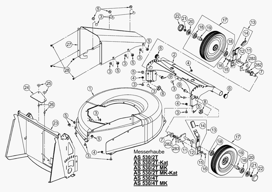 Hier finden Sie alle Ersatzteile von AS-Motor Profi-Rasenmäher AS 530/4T MK ab FNr. 019608050001 aus dem Zeichnungsblatt Messerhaube: