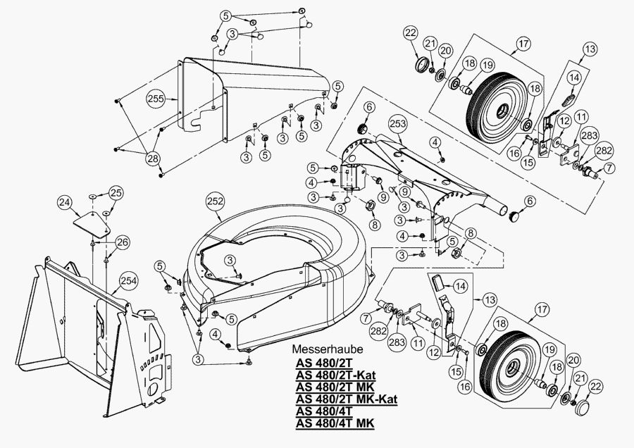 Hier finden Sie alle Ersatzteile von AS-Motor Profi-Rasenmäher AS 480/2T ab FNr. 018908050001 aus dem Zeichnungsblatt Messerhaube:
