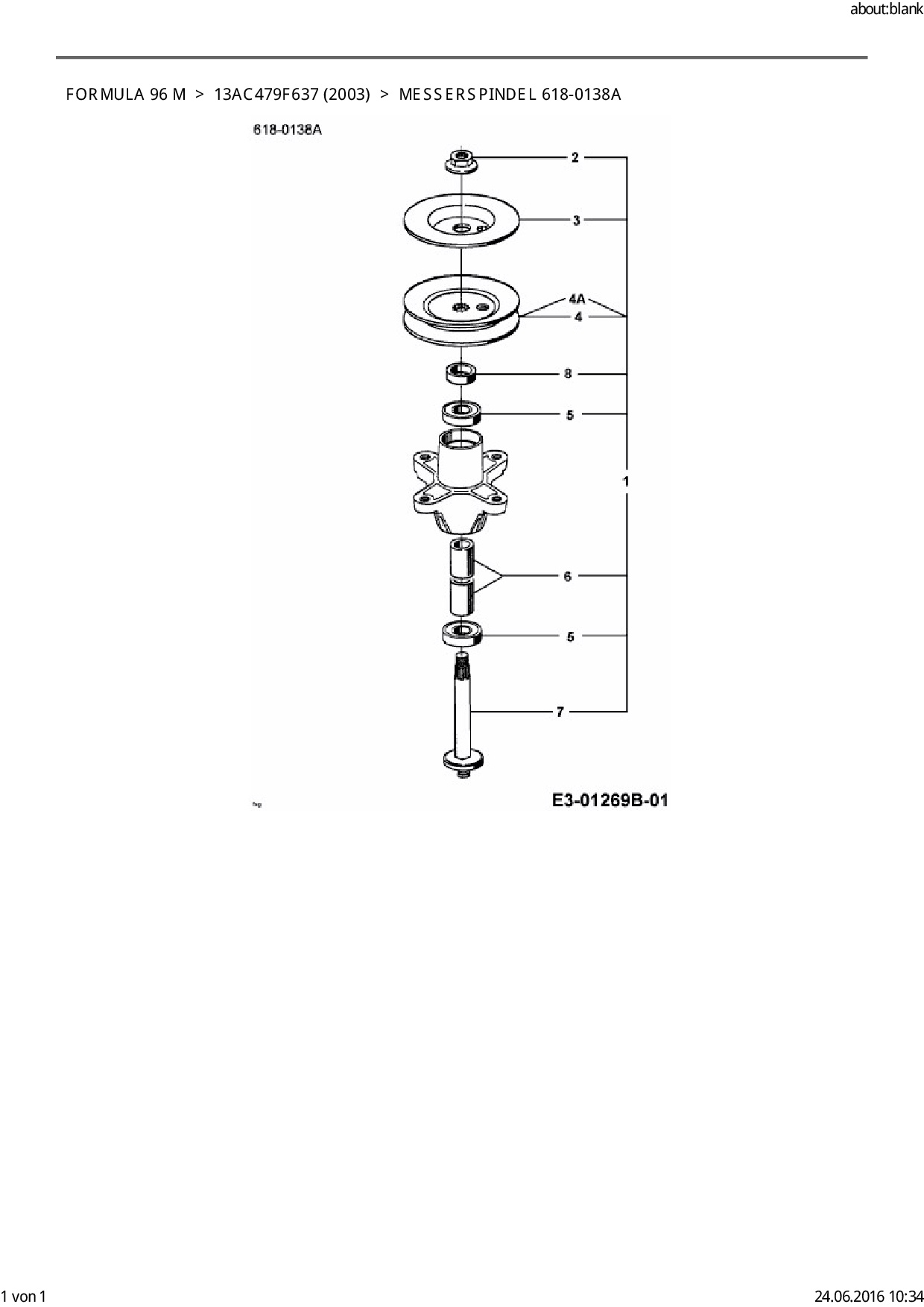 Ersatzteile für Rasentraktor EFCO Formula 96 M aus der Zeichnung Messerspindel 618-0138A: