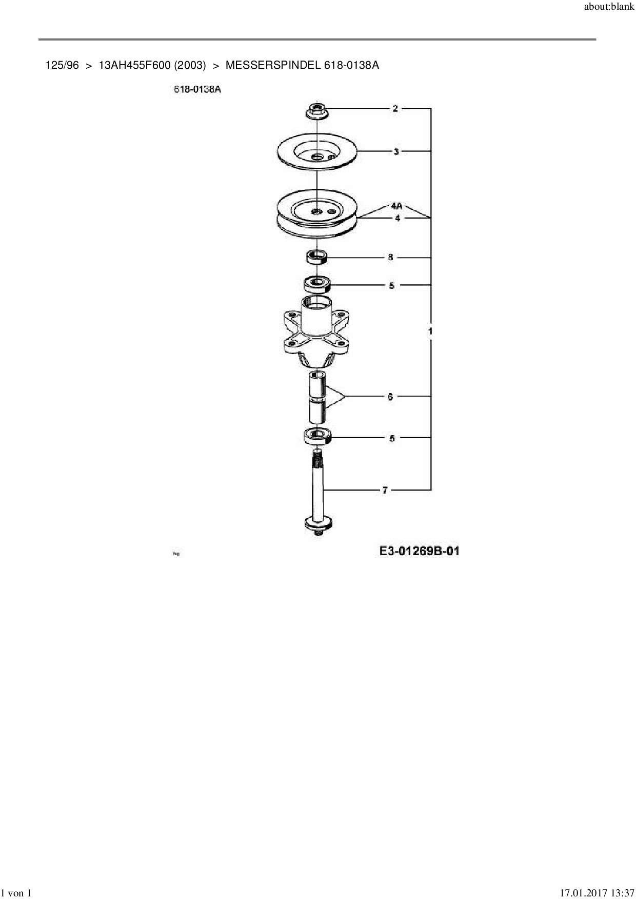 Ersatzteile für Rasentraktor MTD 125/96 aus der Zeichnung Messerspindel 618-0138A: