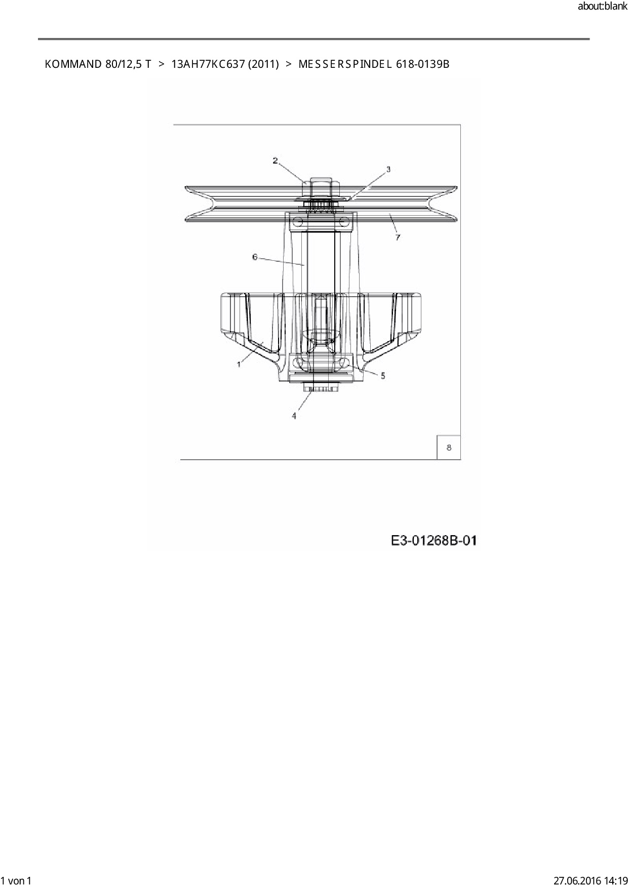 Ersatzteile für Rasentraktor EFCO Kommand 80/12,5 T aus der Zeichnung Messerspindel 618-0139B: