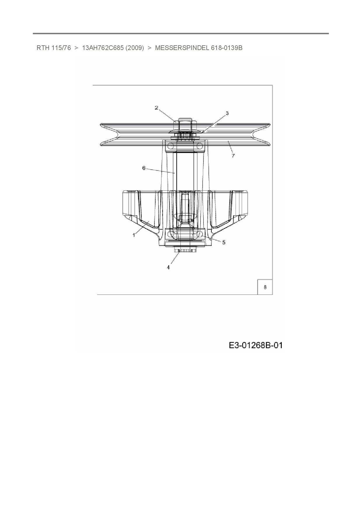 Ersatzteile für Rasentraktor Sunline RTH 115/76 aus der Zeichnung Messerspindel 618-0139B:
