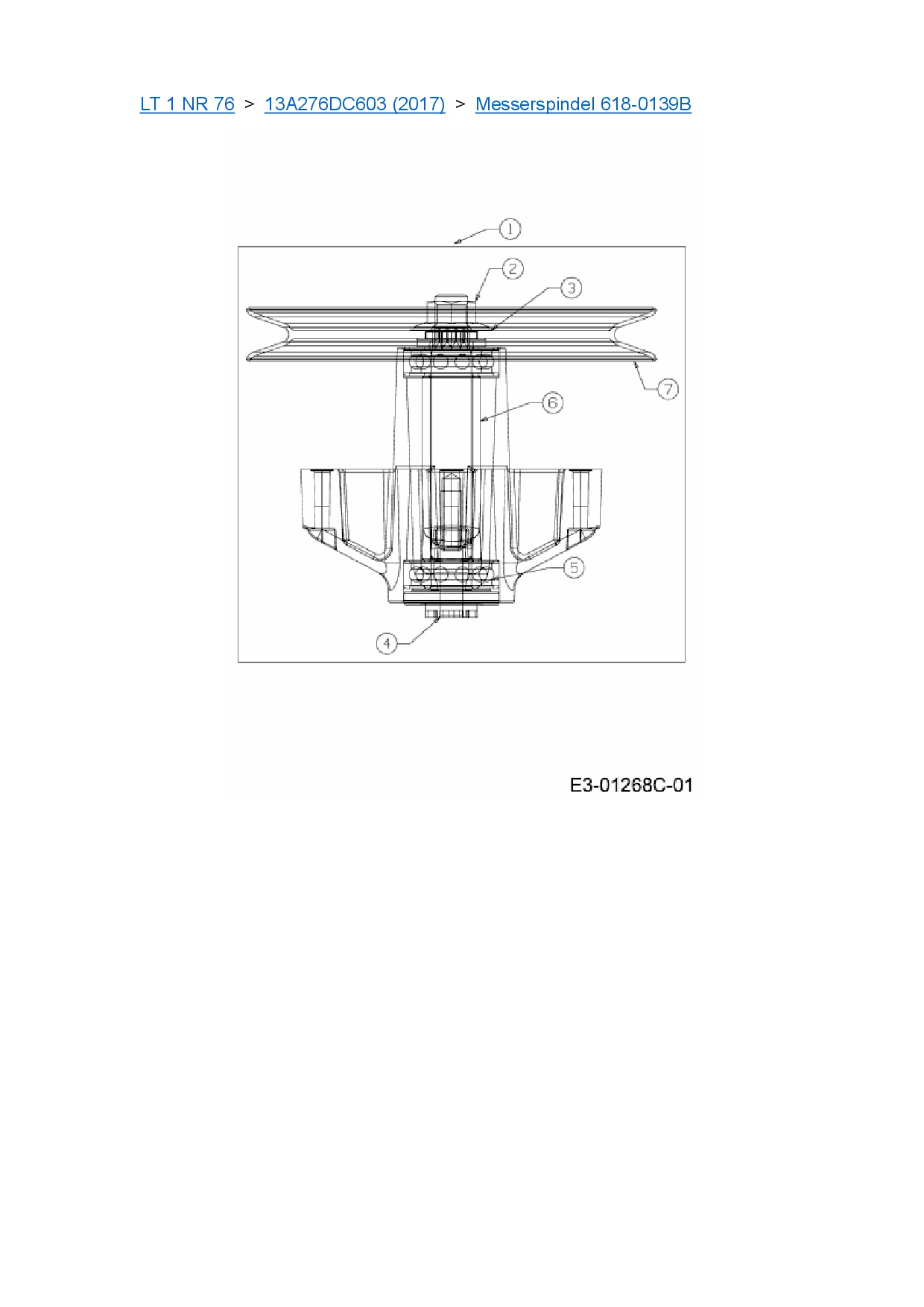 Ersatzteile für Rasentraktor Cub Cadet LT 1 NR 76 aus der Zeichnung Messerspindel 618-0139B: