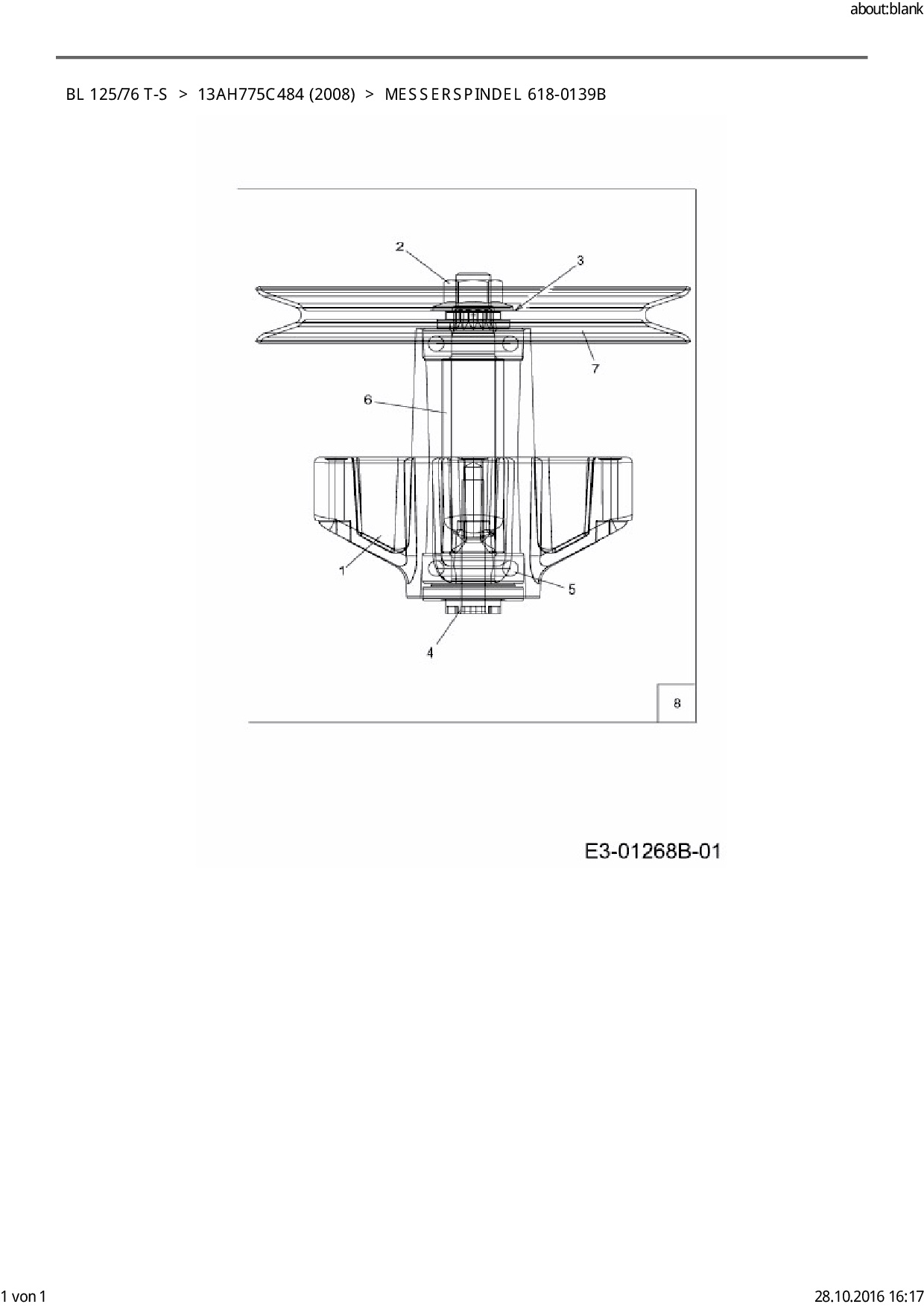 Ersatzteile für Rasentraktor Bolens BL 125/76 T-S aus der Zeichnung Messerspindel 618-0139B: