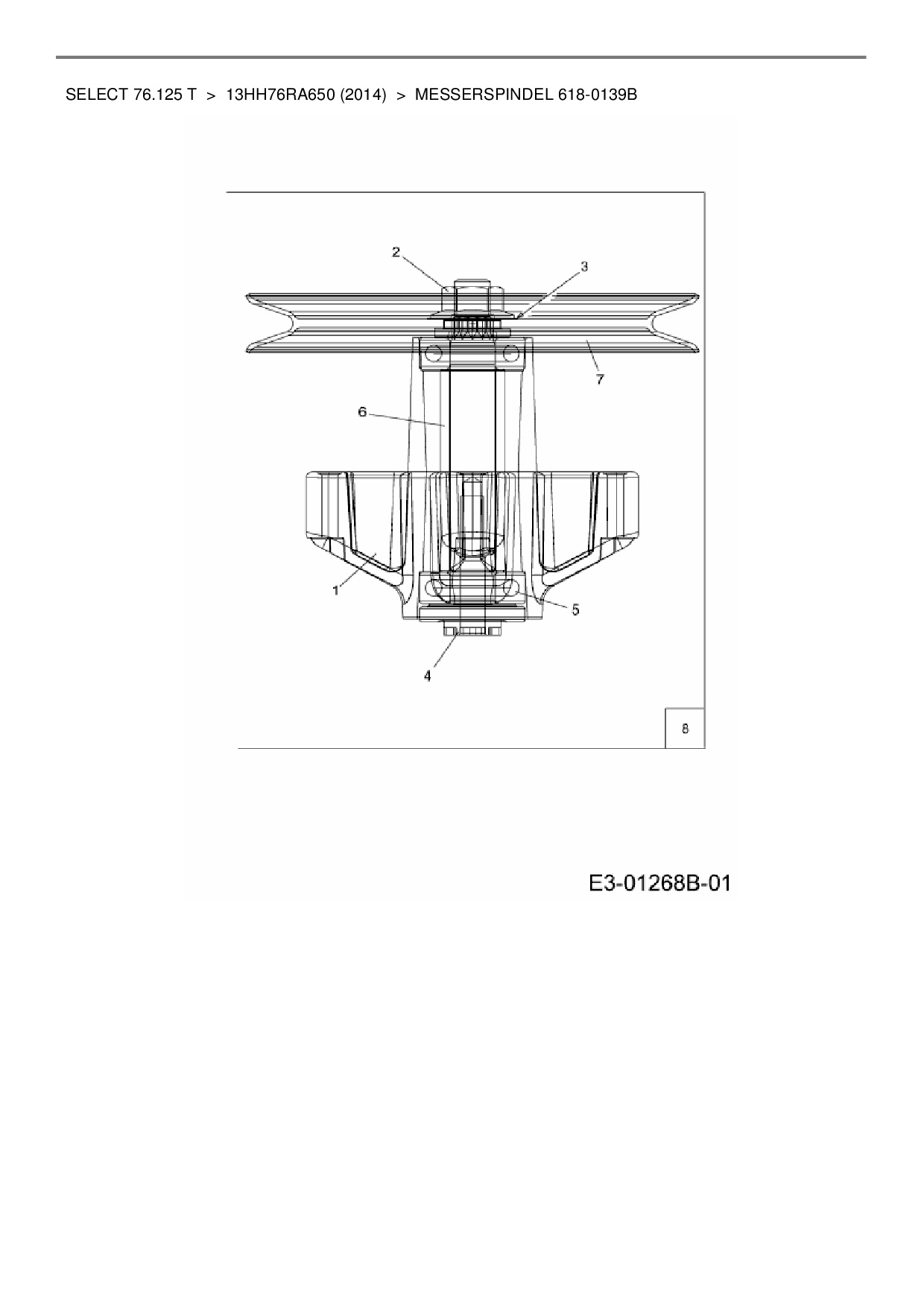 Ersatzteile für Rasentraktor Wolf-Garten Select 76.125 T aus der Zeichnung Messerspindel 618-0139B: