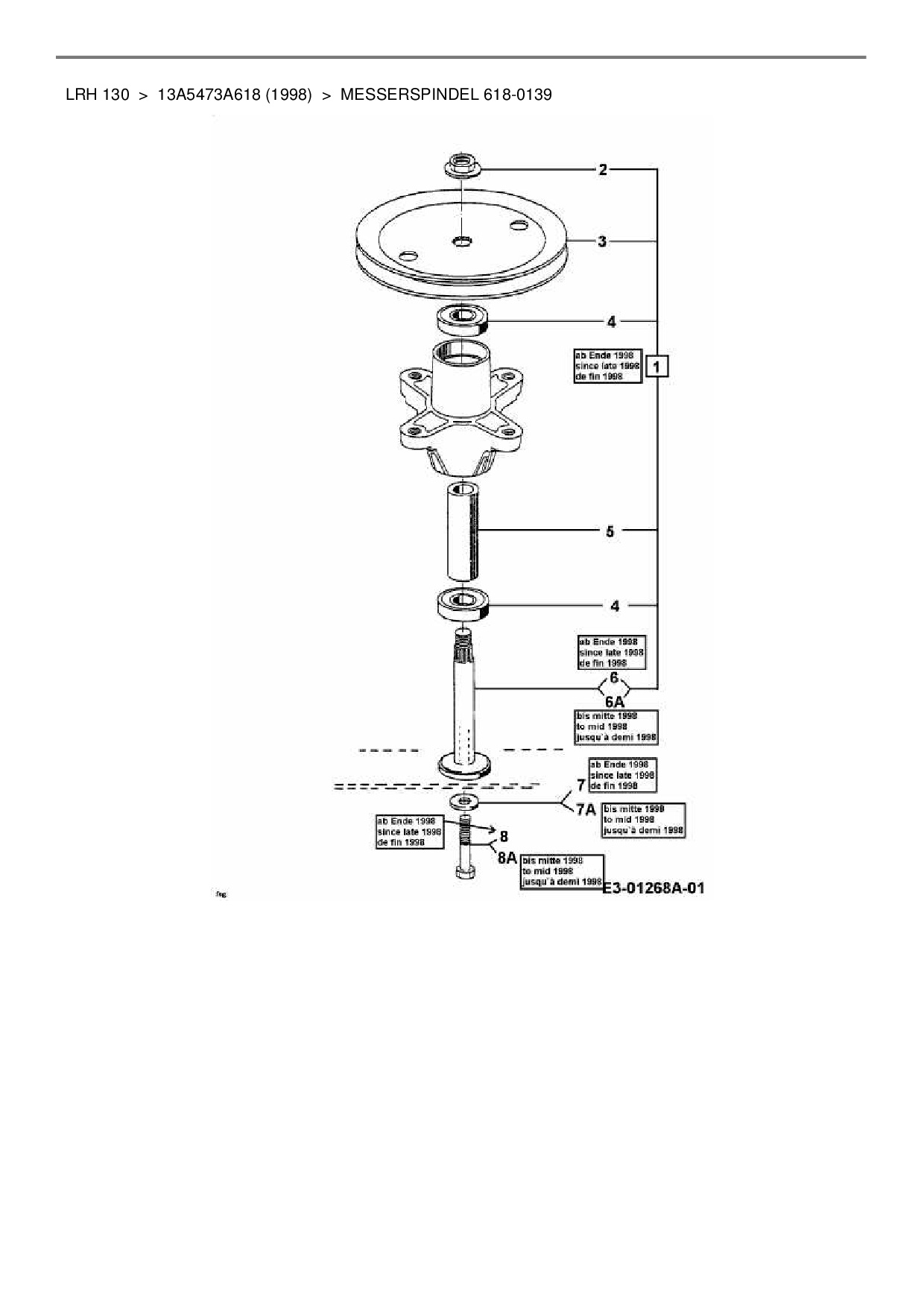 Ersatzteile für Rasentraktor Juwel LRH 130 aus der Zeichnung Messerspindel 618-0139: