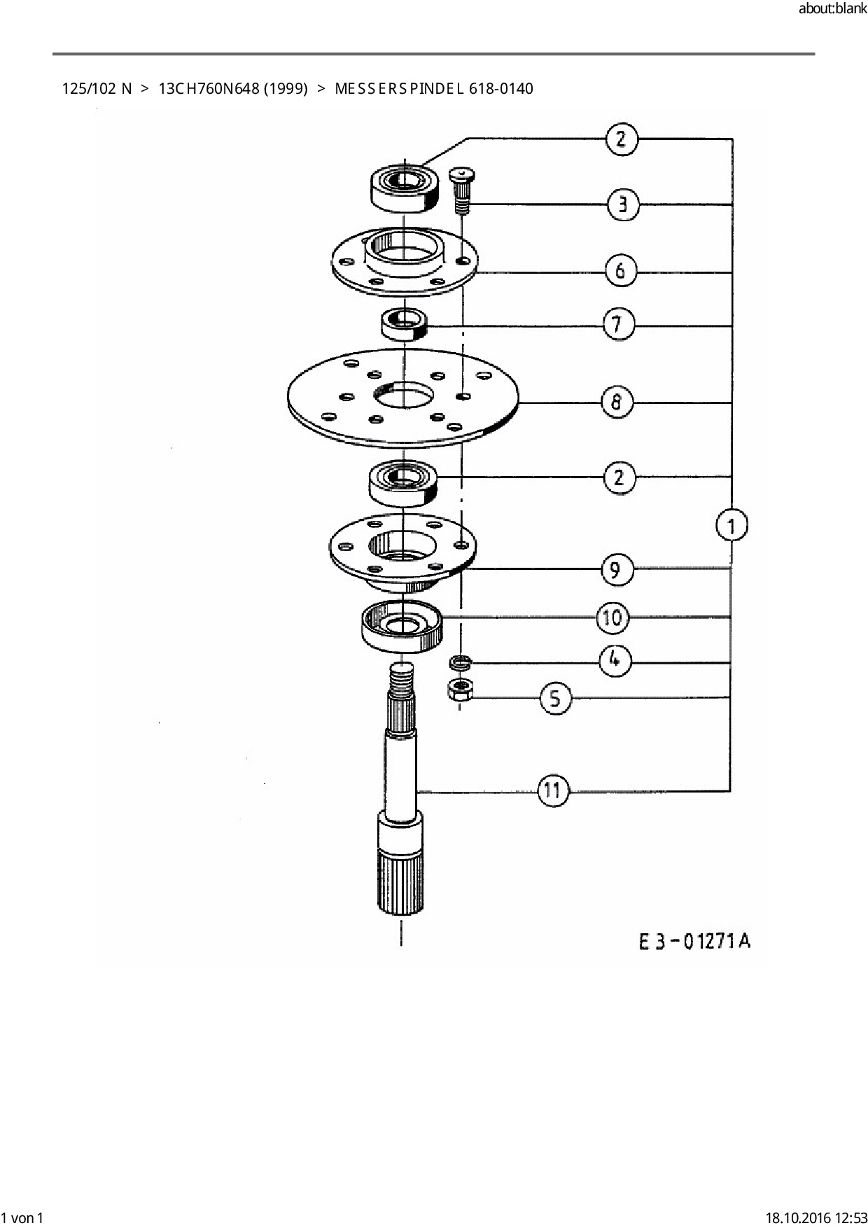 Ersatzteile für Rasentraktor Golf 125/102 N aus der Zeichnung Messerspindel 618-0140:
