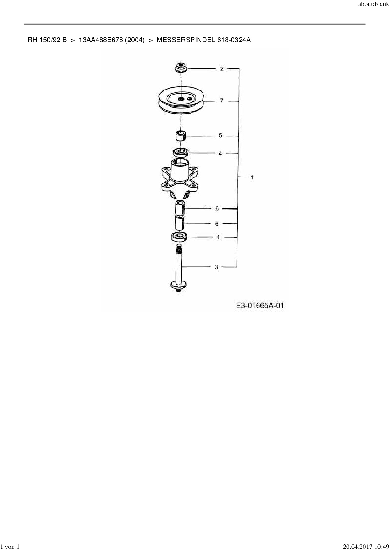 Ersatzteile für Rasentraktor MTD RH 150/92 B aus der Zeichnung Messerspindel 618-0324A: