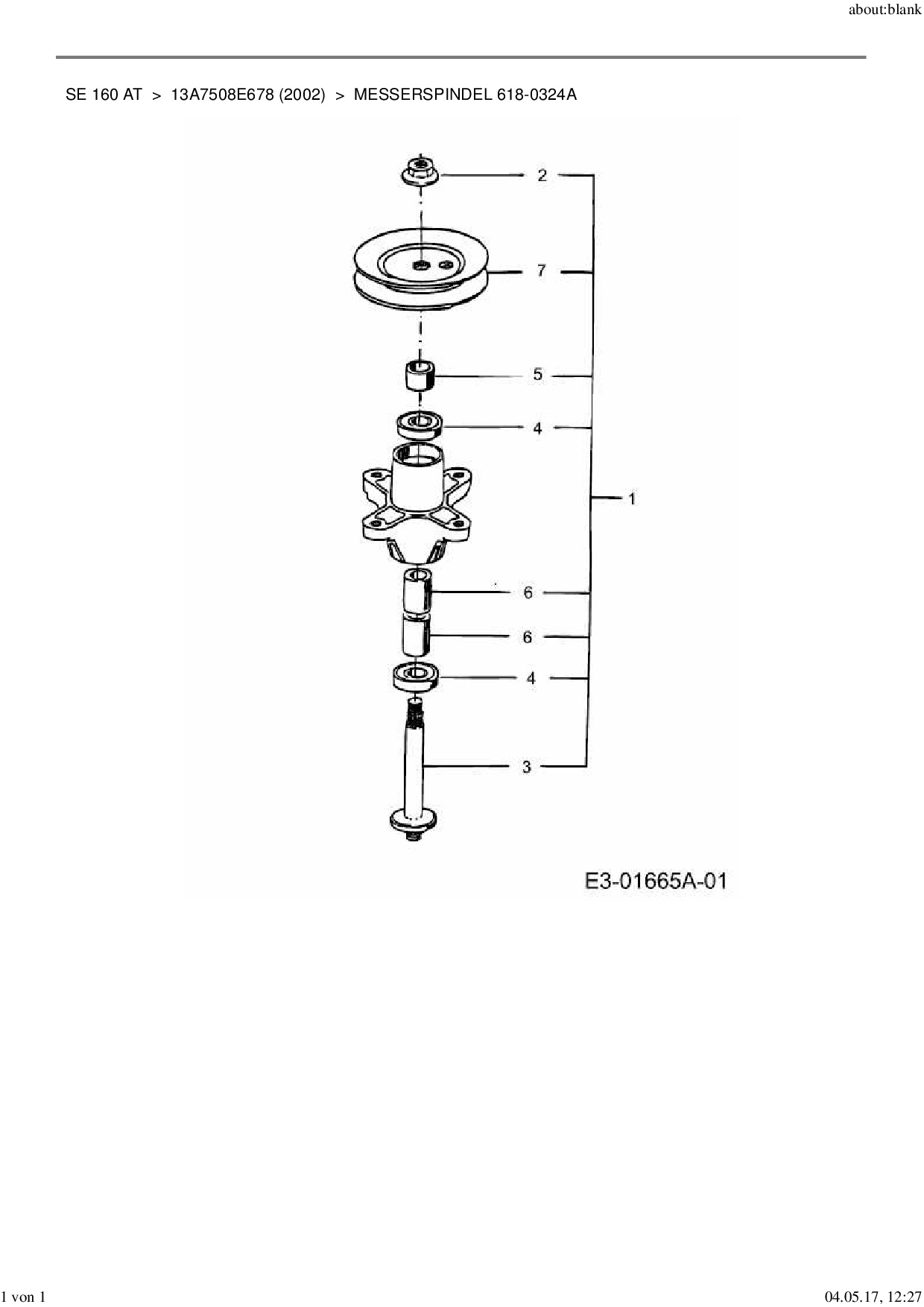 Ersatzteile für Rasentraktor MTD SE 160 AT aus der Zeichnung Messerspindel 618-0324A: