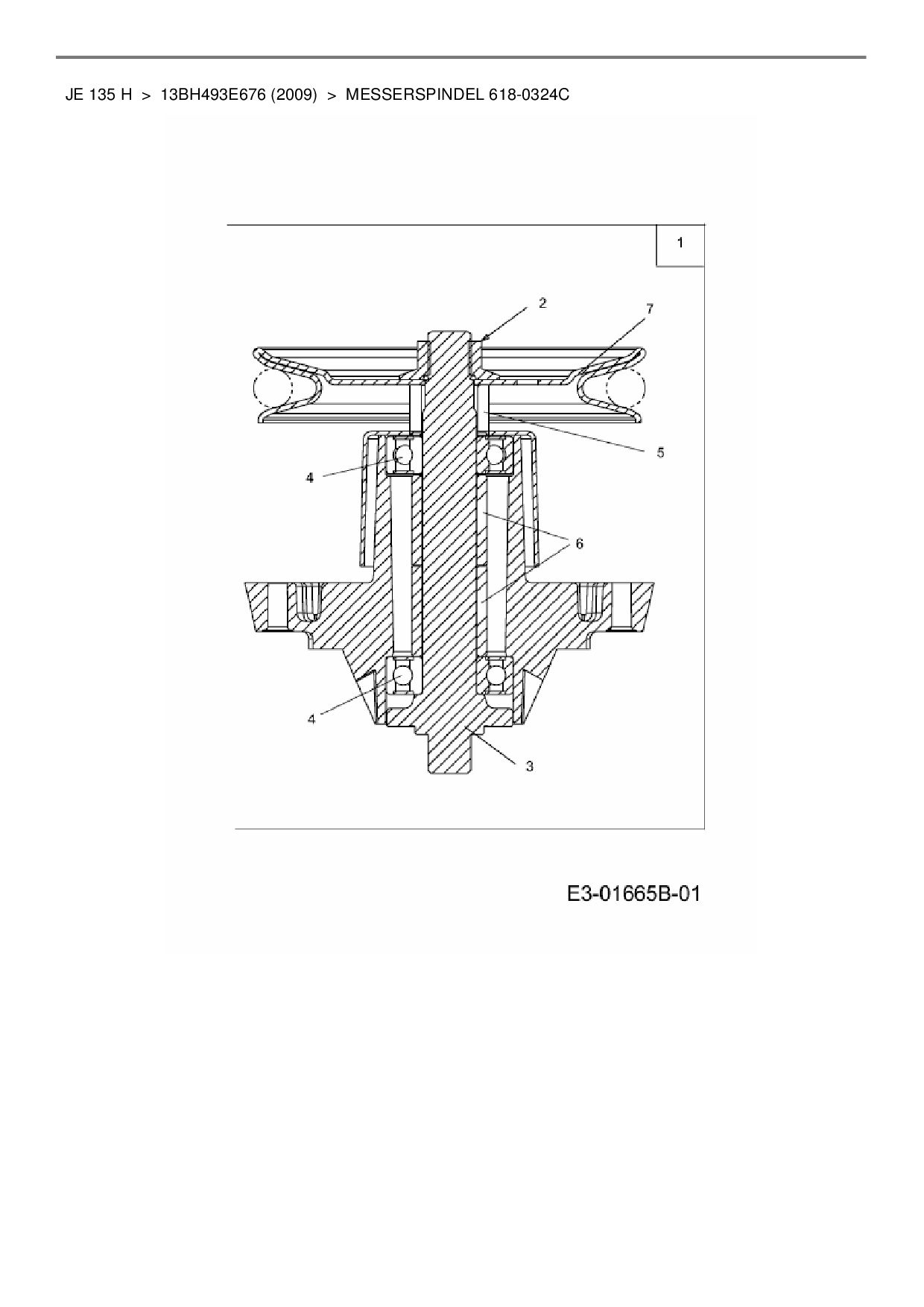 Ersatzteile für Rasentraktor MTD JE 135 H aus der Zeichnung Messerspindel 618-0324C: