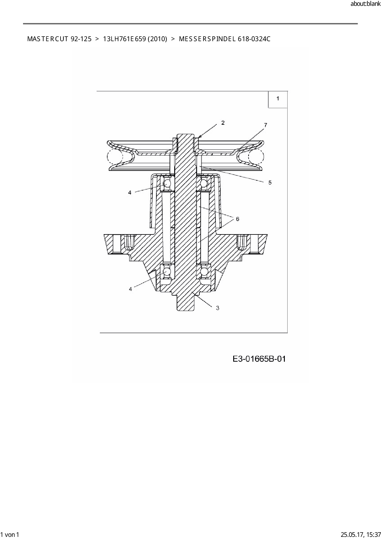 Ersatzteile für Rasentraktor Mastercut Mastercut 92-125 aus der Zeichnung Messerspindel 618-0324C: