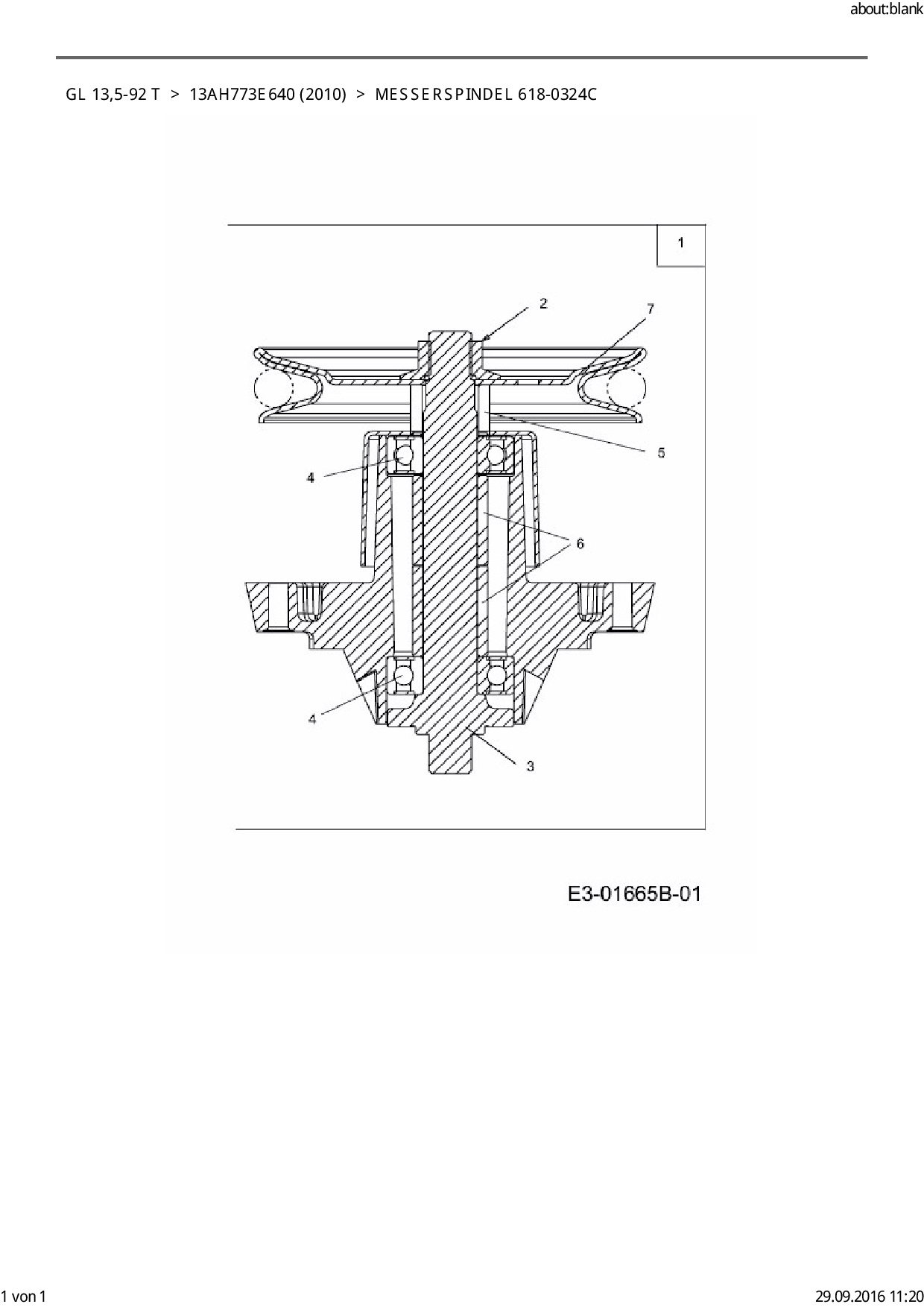 Ersatzteile für Rasentraktor Gartenland GL 13,5-92 T aus der Zeichnung Messerspindel 618-0324C: