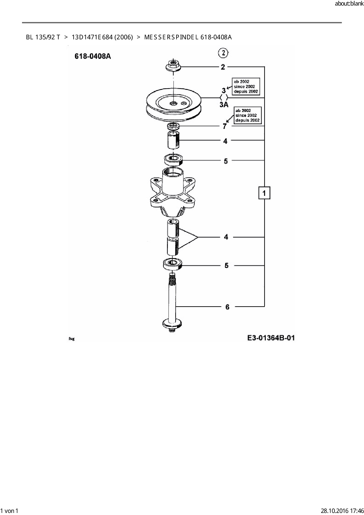 Ersatzteile für Rasentraktor Bolens BL 135/92 T aus der Zeichnung Messerspindel 618-0408A: