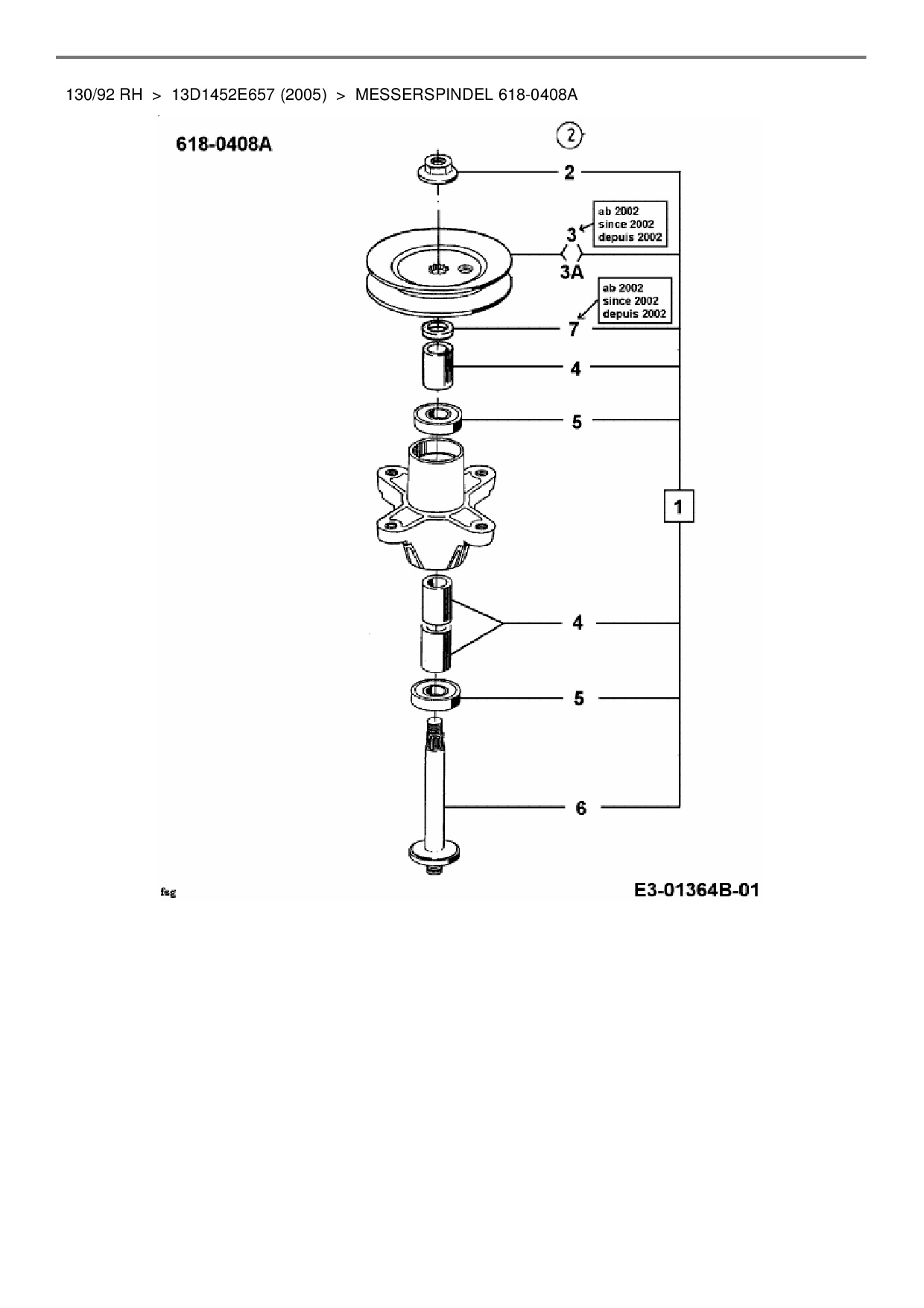 Ersatzteile für Rasentraktor Mastercut 130/92 RH aus der Zeichnung Messerspindel 618-0408A: