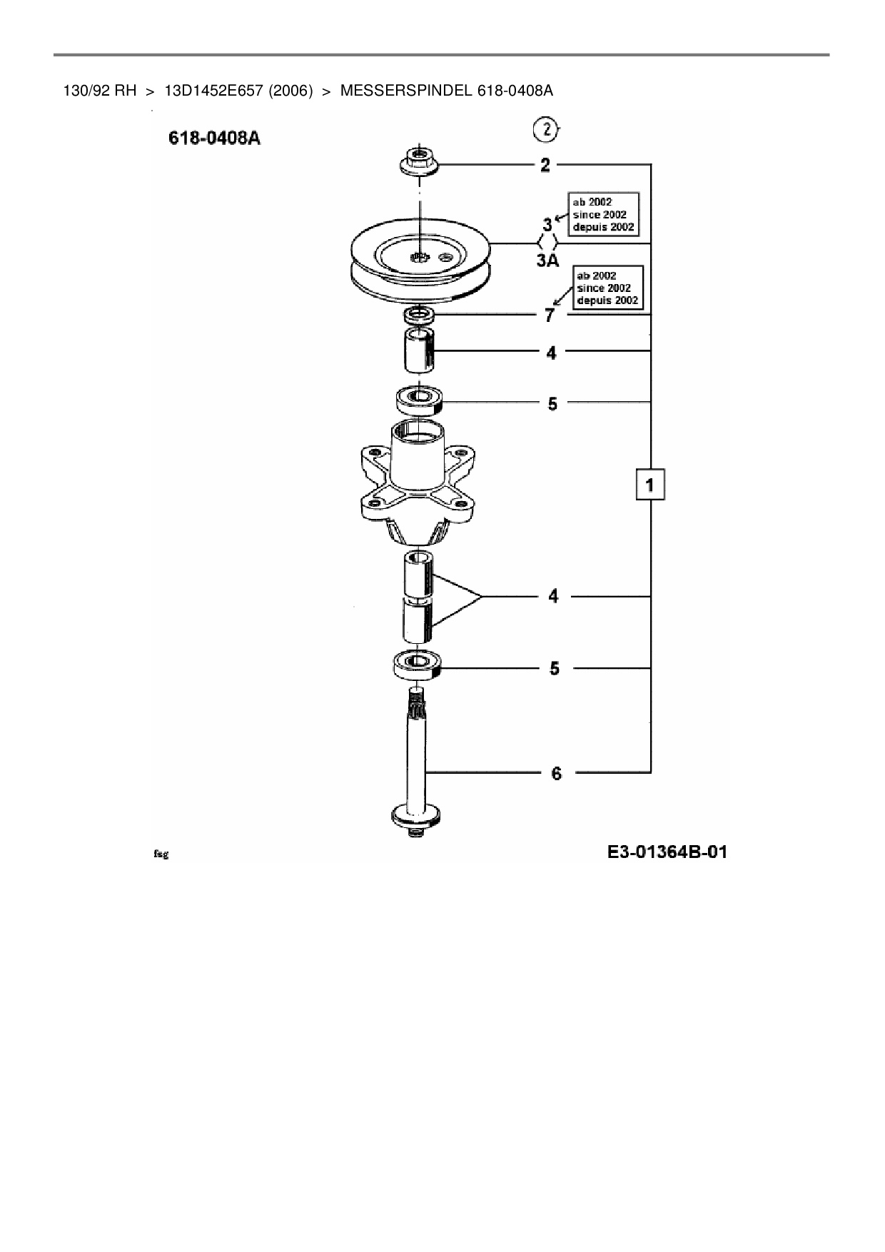 Ersatzteile für Rasentraktor Mastercut 130/92 RH aus der Zeichnung Messerspindel 618-0408A:
