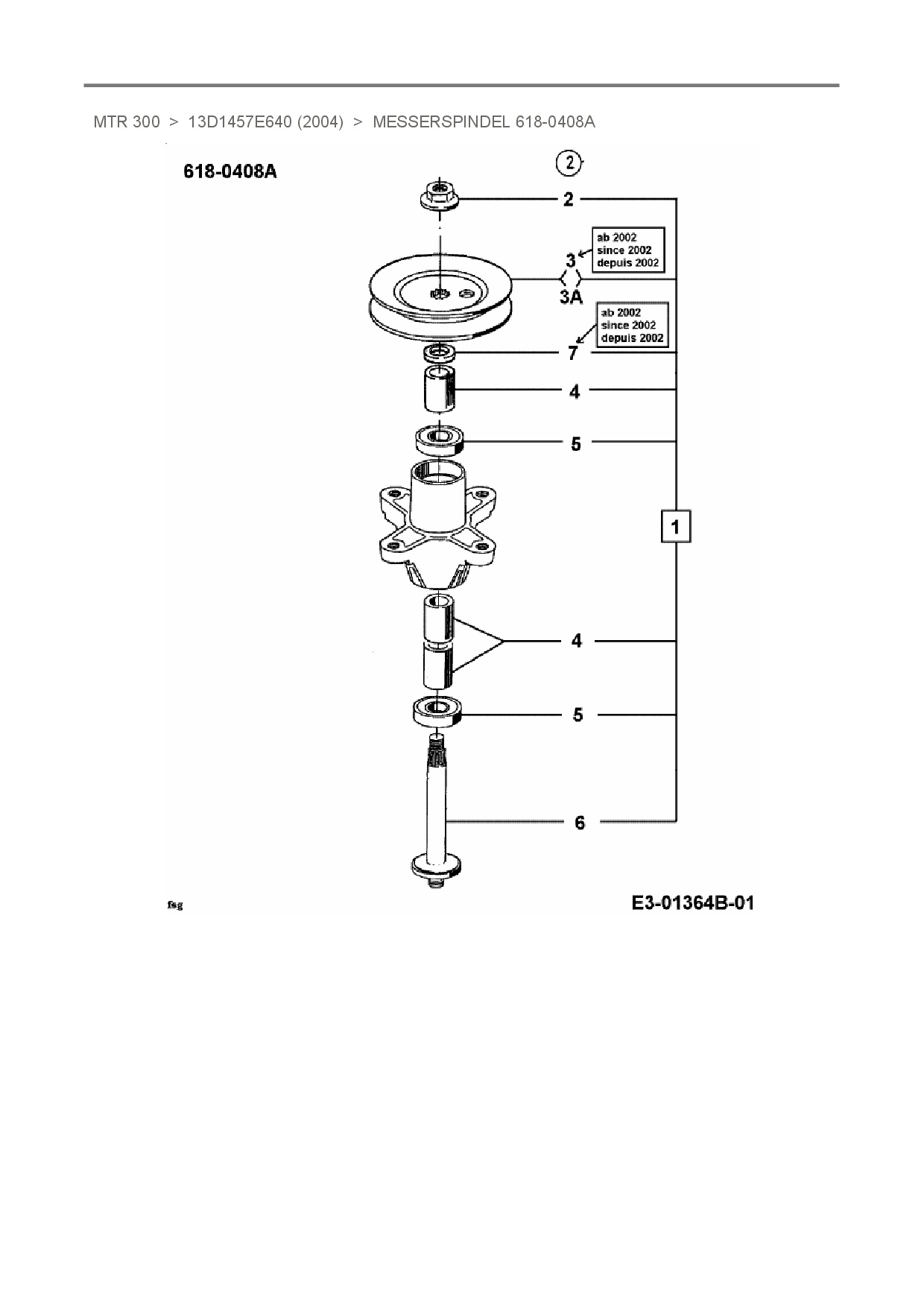 Ersatzteile für Rasentraktor Motec MTR 300 aus der Zeichnung Messerspindel 618-0408A: