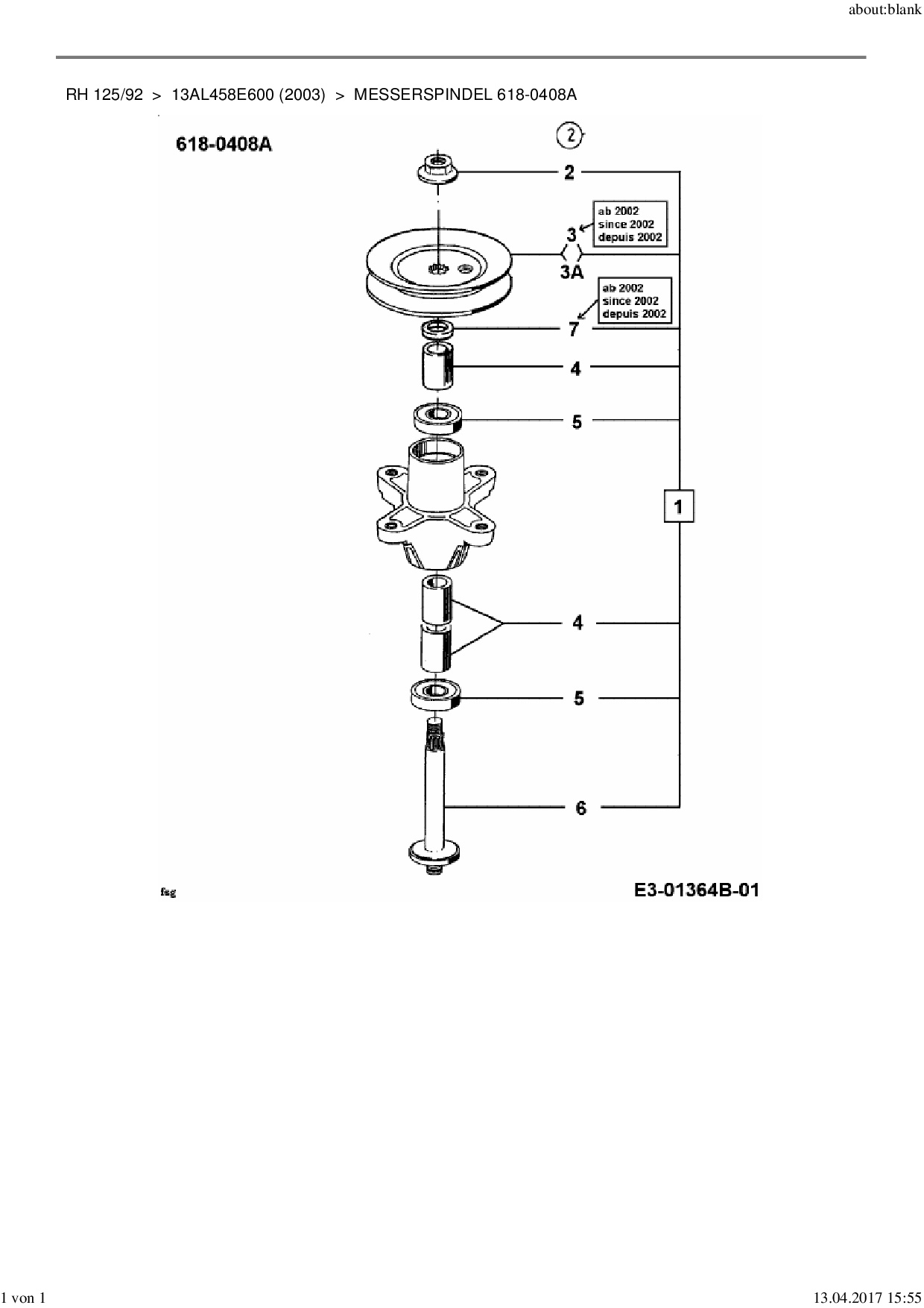 Ersatzteile für Rasentraktor MTD RH 125/92 aus der Zeichnung Messerspindel 618-0408A: