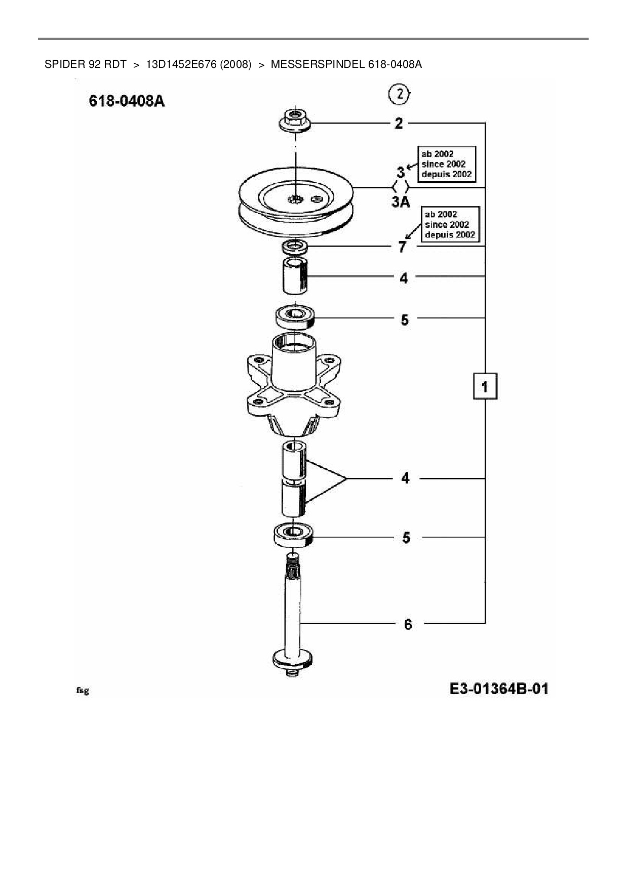 Ersatzteile für Rasentraktor MTD Spider 92 RDT aus der Zeichnung Messerspindel 618-0408A: