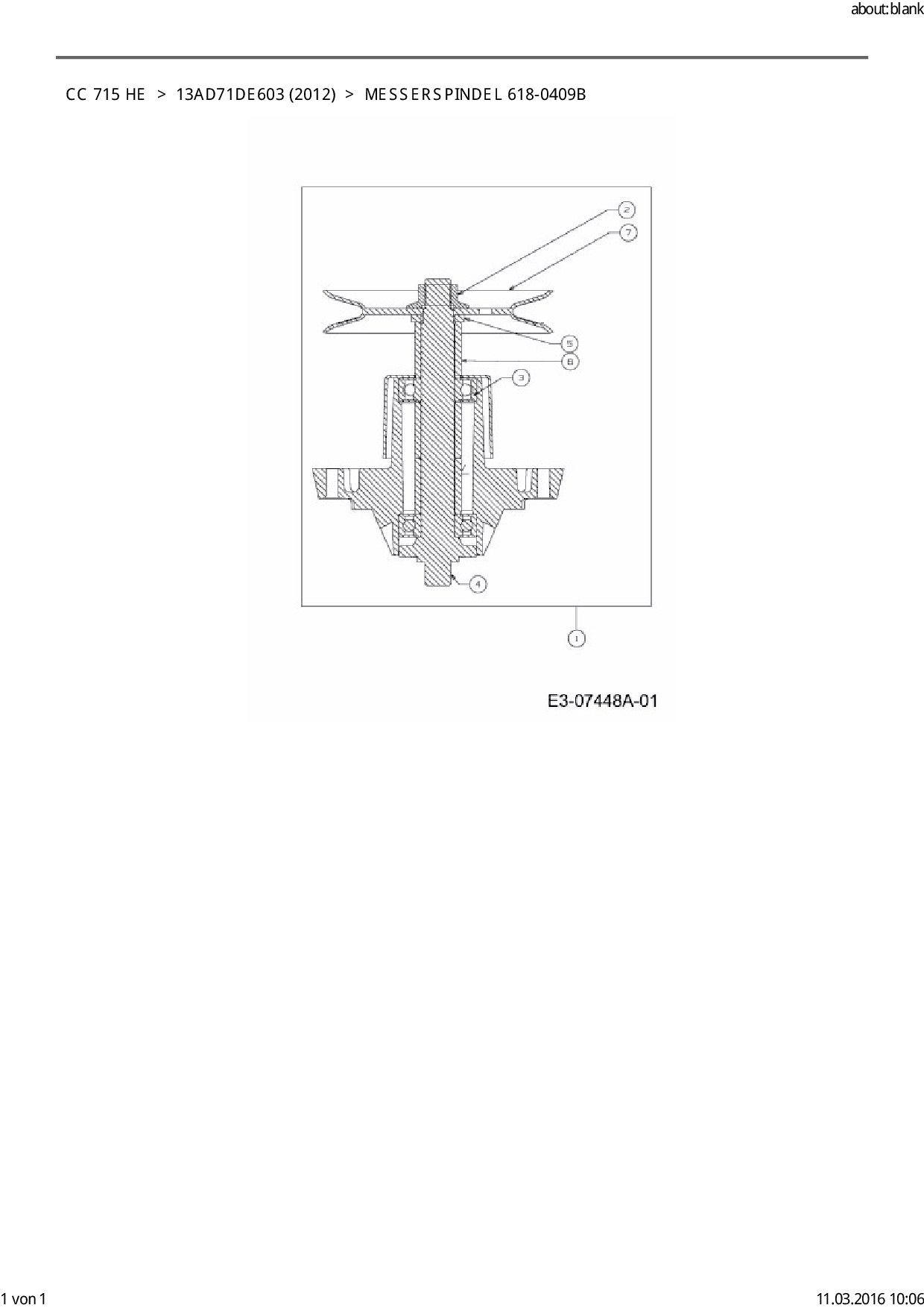 Ersatzteile für Rasentraktor Cub Cadet CC 715 HE aus der Zeichnung Messerspindel 618-0409B: