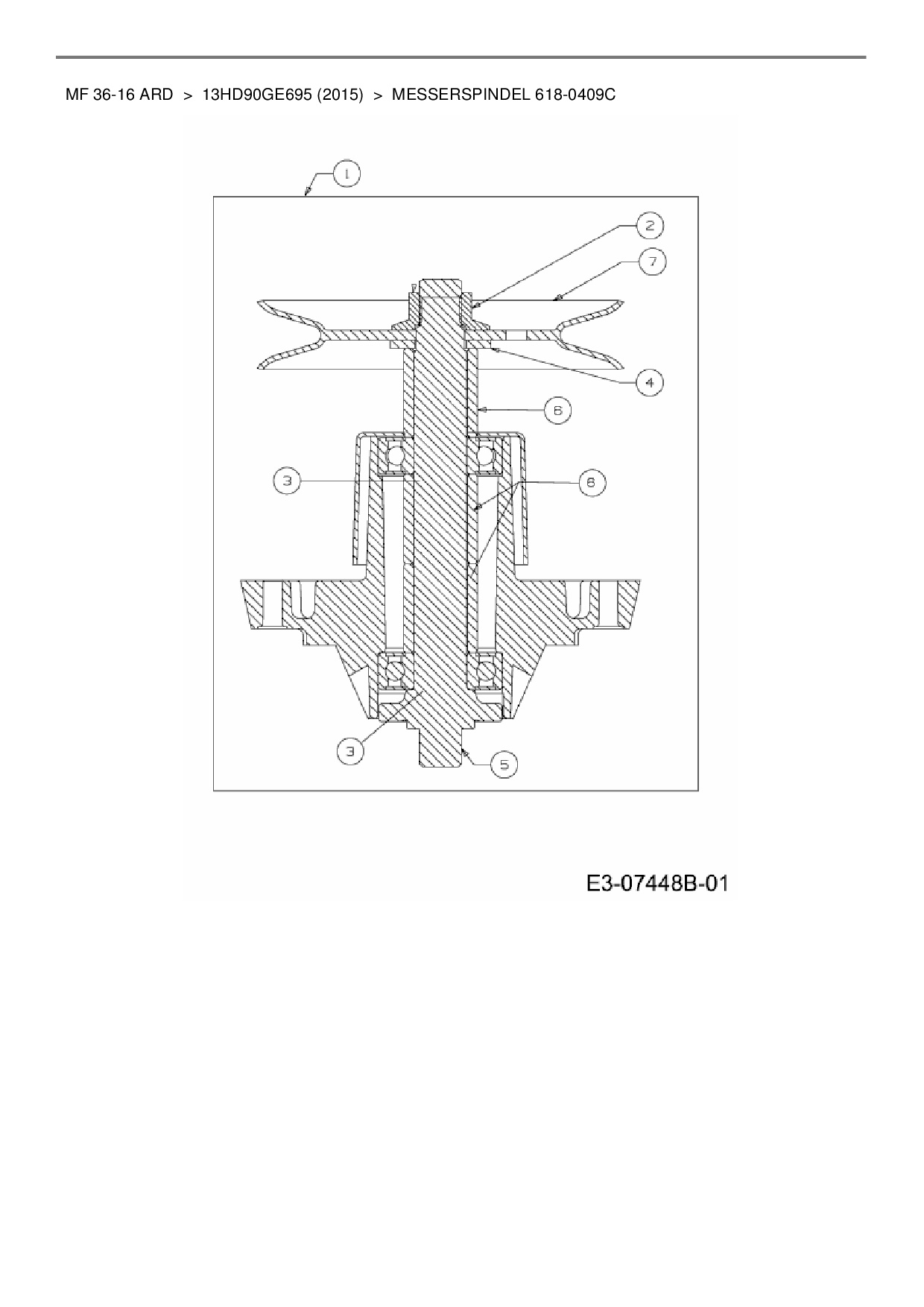 Ersatzteile für Rasentraktor Massey Ferguson MF 36-16 ARD aus der Zeichnung Messerspindel 618-0409C: