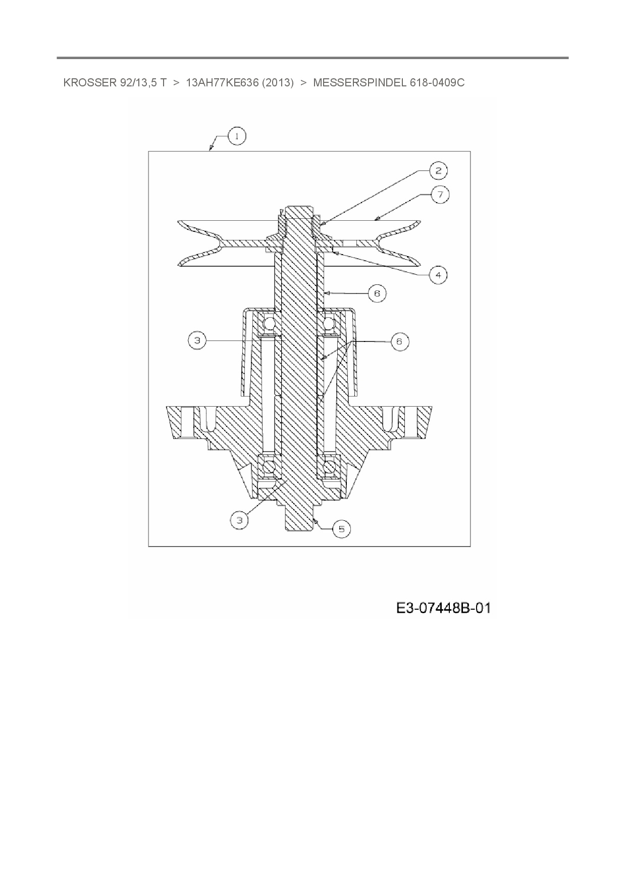 Ersatzteile für Rasentraktor Oleo-Mac Krosser 92/13,5 T aus der Zeichnung Messerspindel 618-0409C: