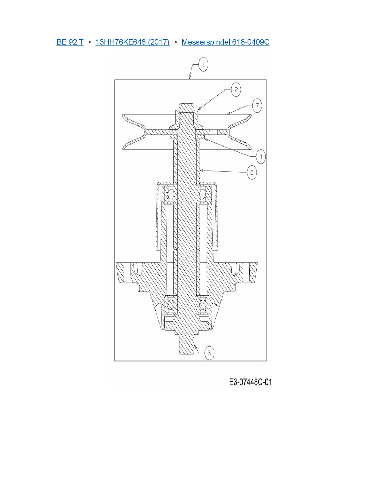 Ersatzteile für Rasentraktor MTD BE 92 T aus der Zeichnung Messerspindel 618-0409C: