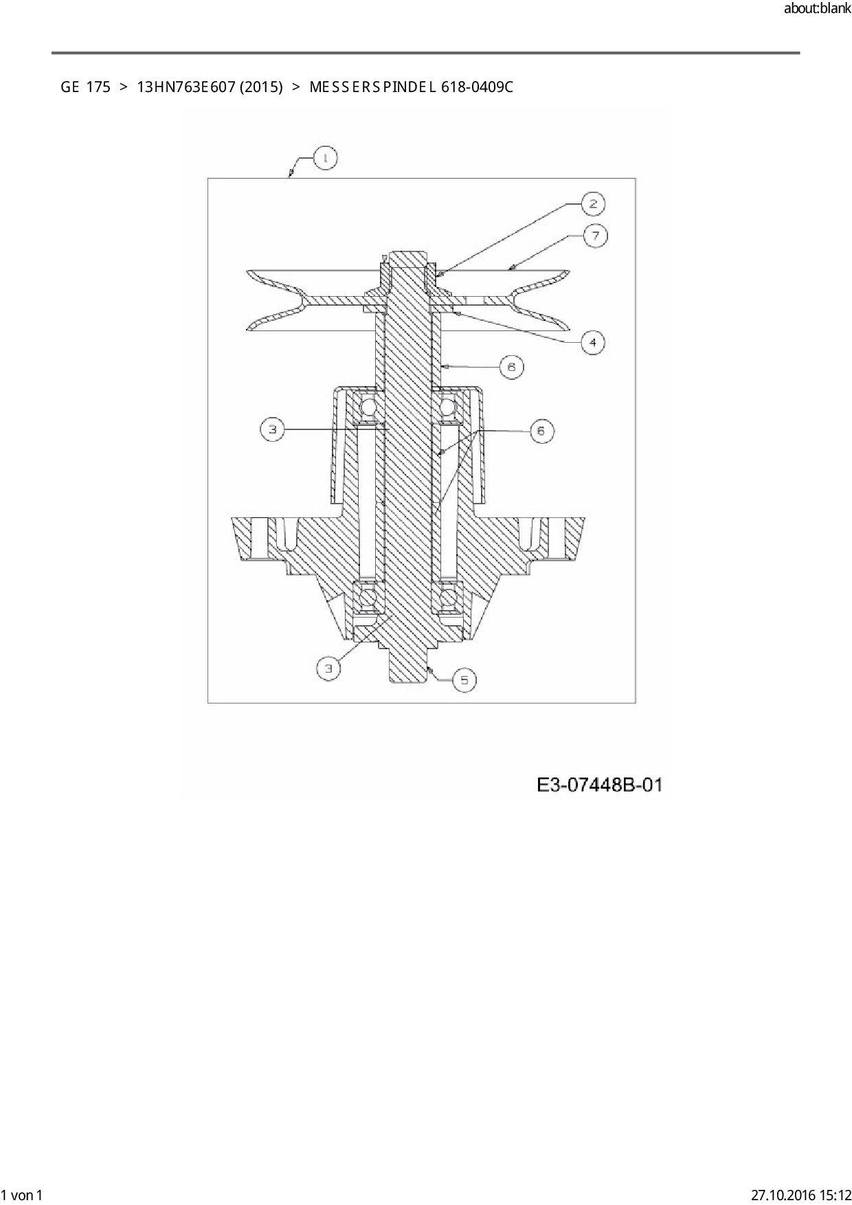 Ersatzteile für Rasentraktor Blisar GE 175 aus der Zeichnung Messerspindel 618-0409C: