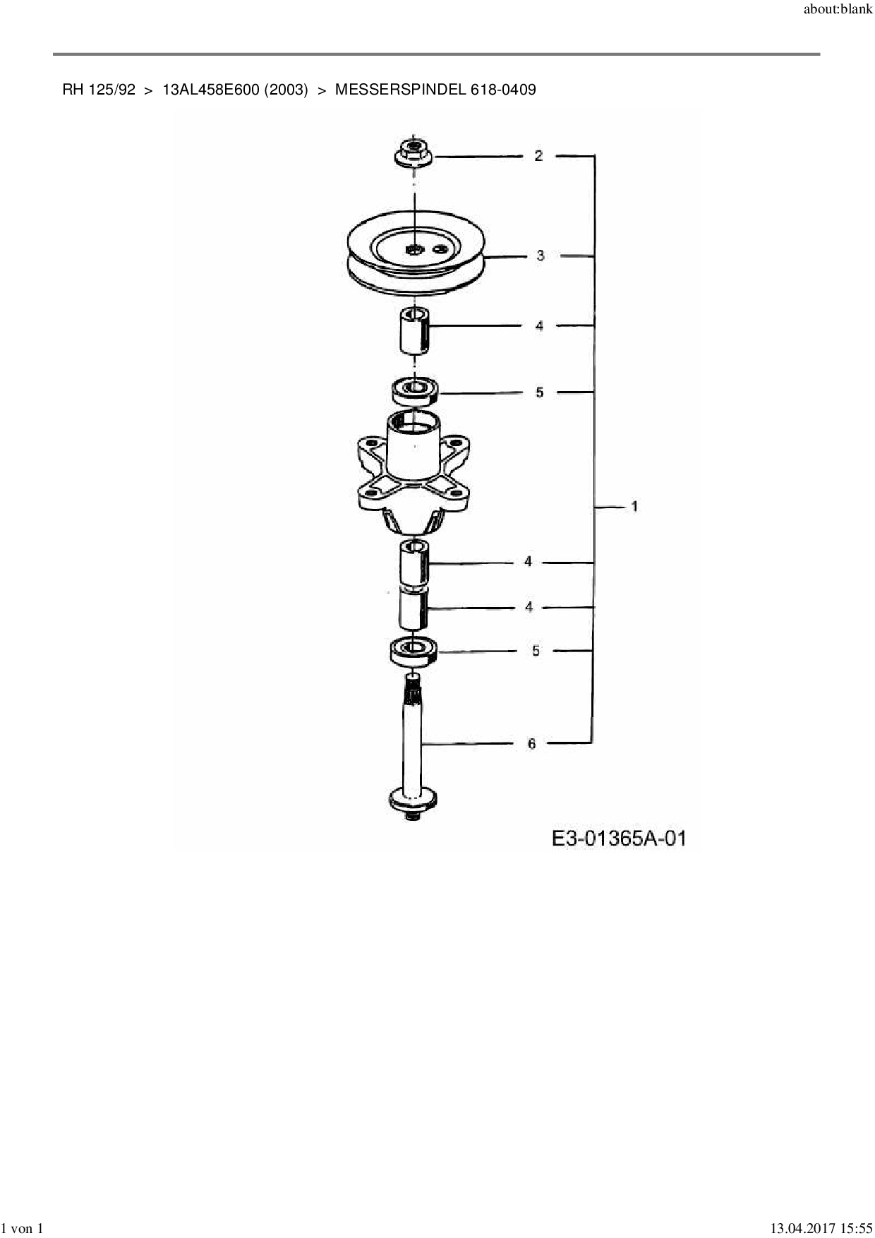 Ersatzteile für Rasentraktor MTD RH 125/92 aus der Zeichnung Messerspindel 618-0409: