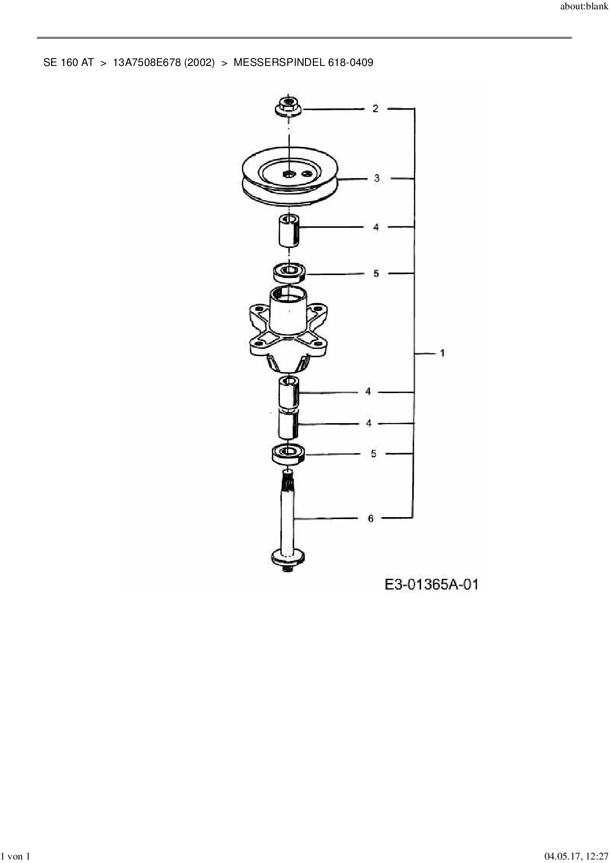 Ersatzteile für Rasentraktor MTD SE 160 AT aus der Zeichnung Messerspindel 618-0409: