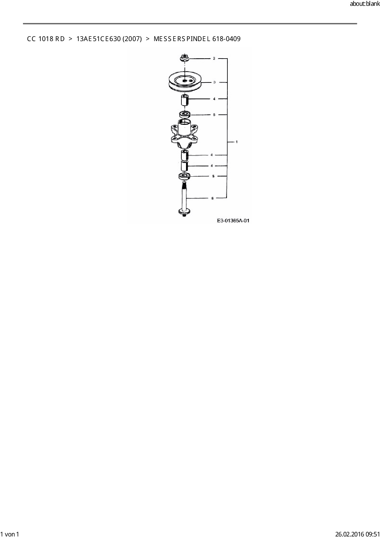 Ersatzteile für Rasentraktor Cub Cadet CC 1018 RD aus der Zeichnung Messerspindel 618-0409: