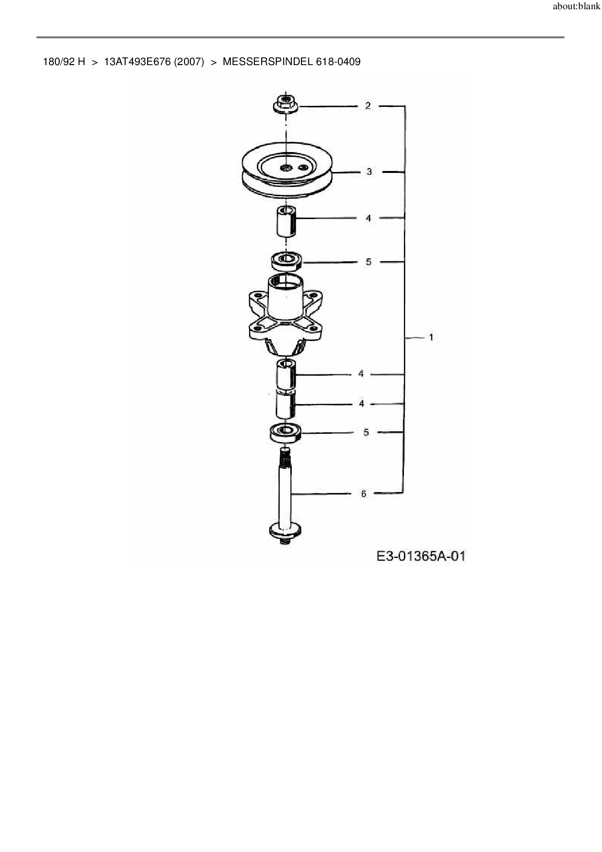 Ersatzteile für Rasentraktor MTD 180/92 H aus der Zeichnung Messerspindel 618-0409: