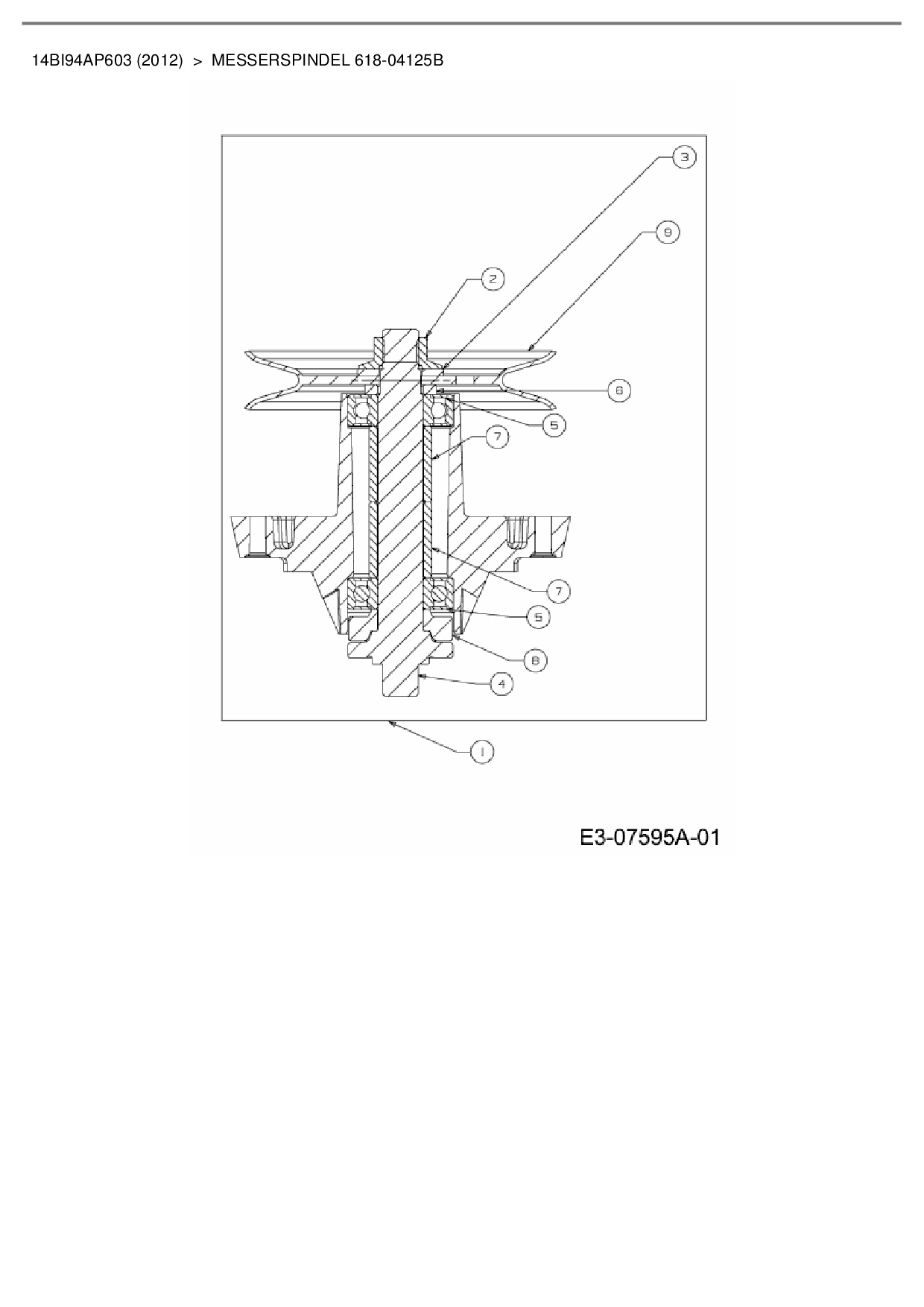 Ersatzteile für Gartentraktor Cub Cadet CC 1224 KHP aus der Zeichnung Messerspindel 618-04125B: