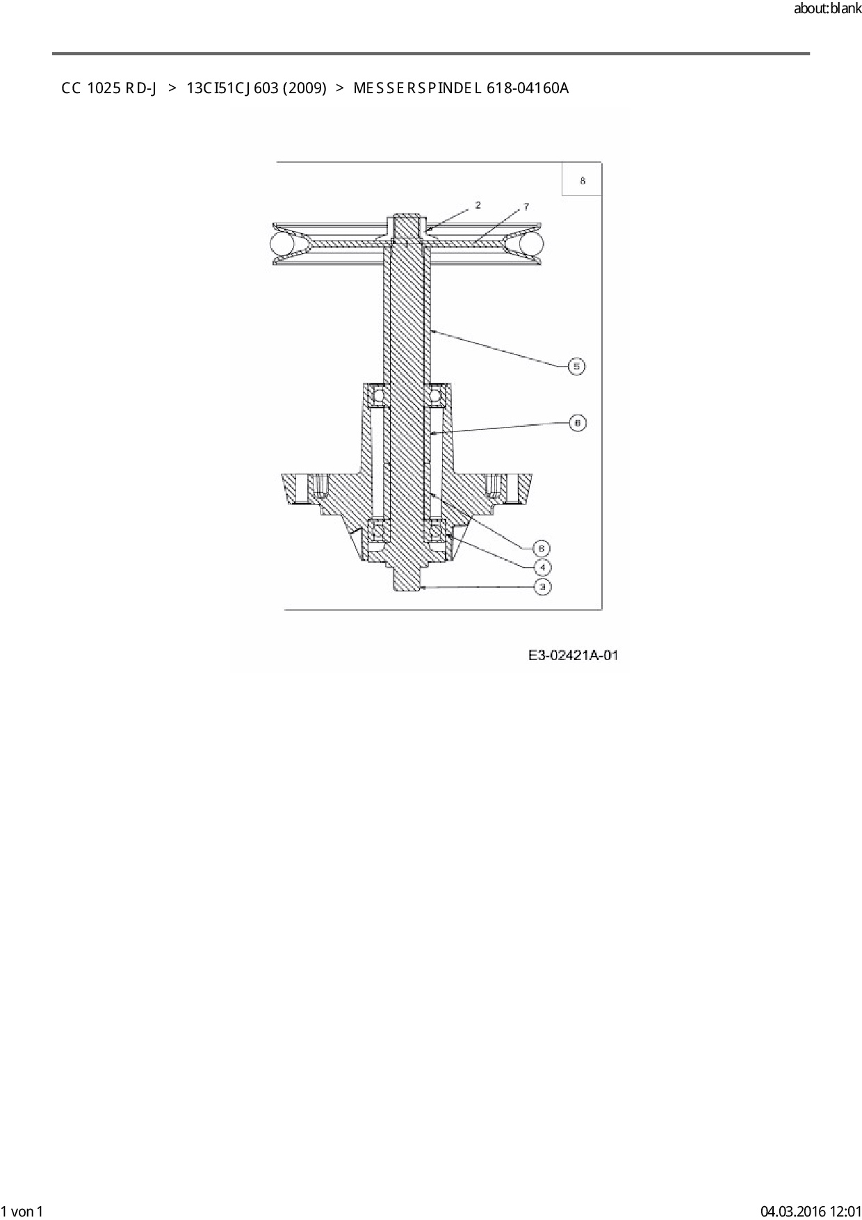 Ersatzteile für Rasentraktor Cub Cadet CC 1025 RD-J aus der Zeichnung Messerspindel 618-04160A: