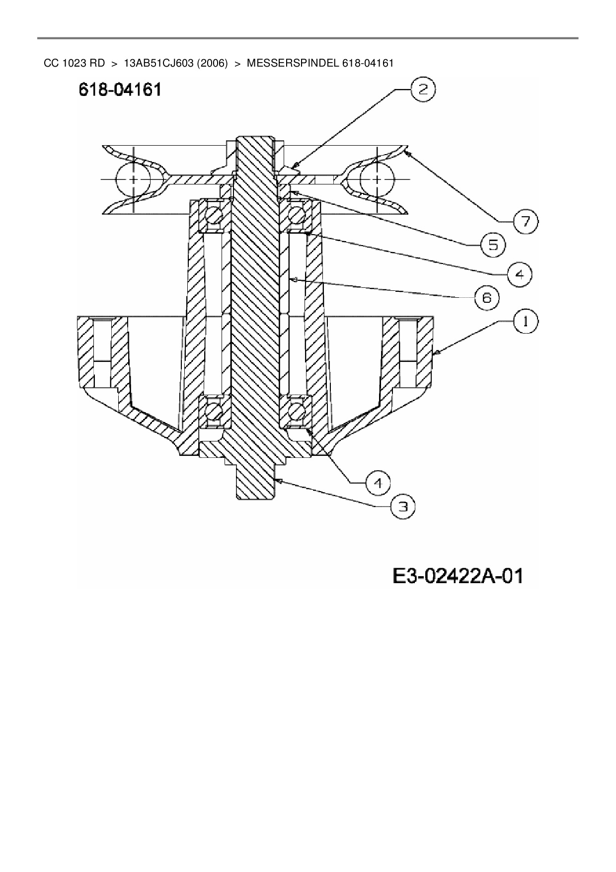 Ersatzteile für Rasentraktor Cub Cadet CC 1023 RD aus der Zeichnung Messerspindel 618-04161: