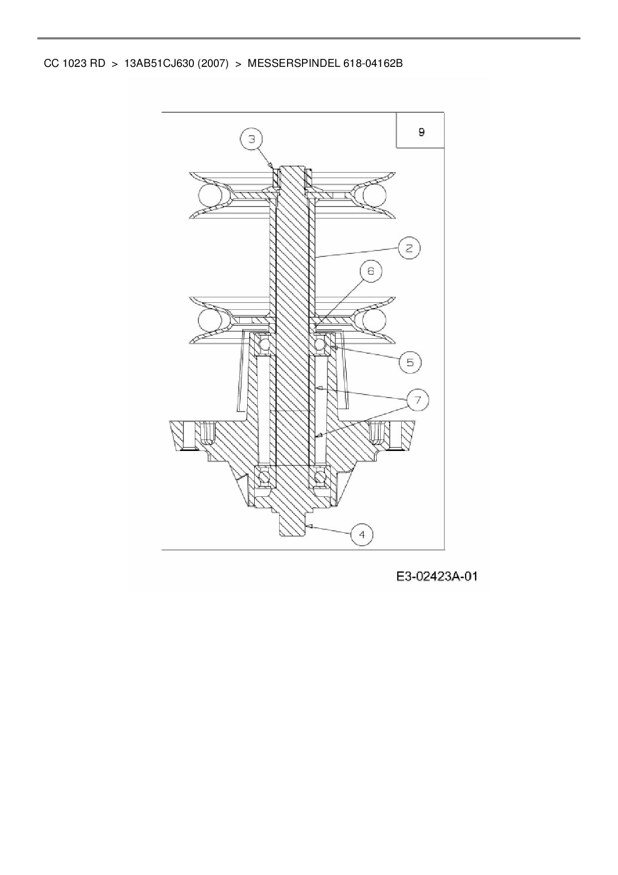Ersatzteile für Rasentraktor Cub Cadet CC 1023 RD aus der Zeichnung Messerspindel 618-04162B: