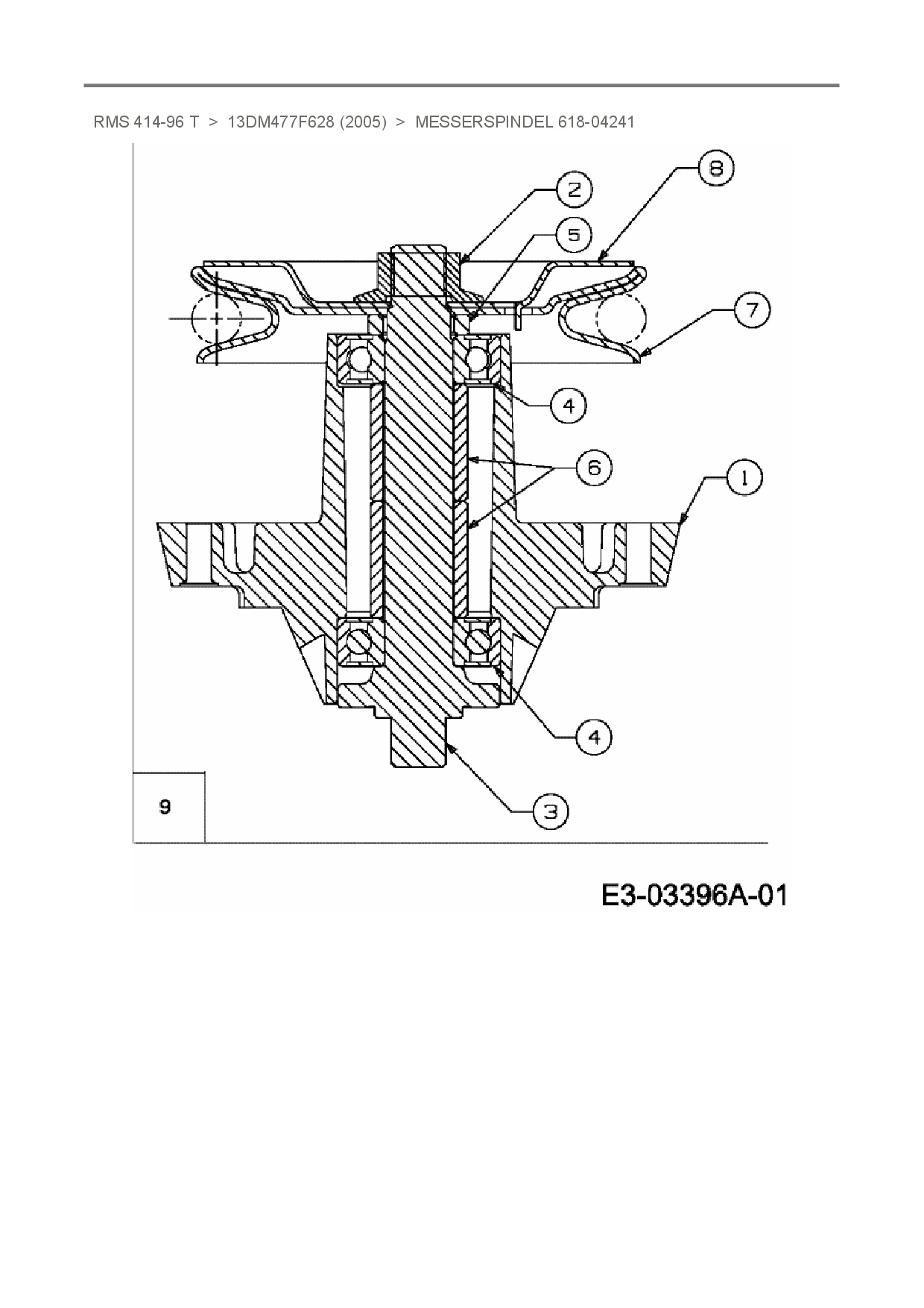 Ersatzteile für Rasentraktor Raiffeisen RMS 414-96 T aus der Zeichnung Messerspindel 618-04241: