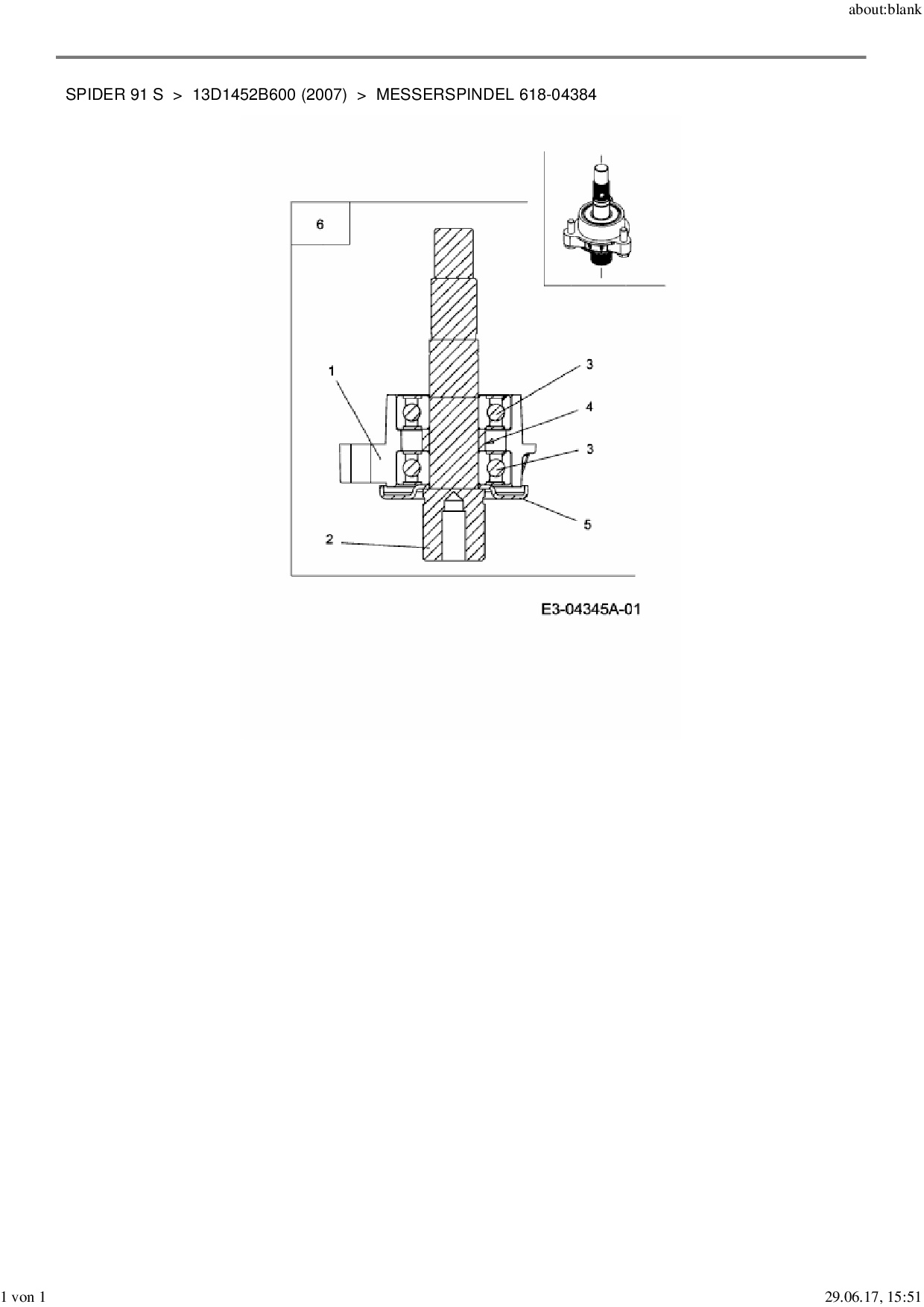Ersatzteile für Rasentraktor MTD Spider 91 S aus der Zeichnung Messerspindel 618-04384: