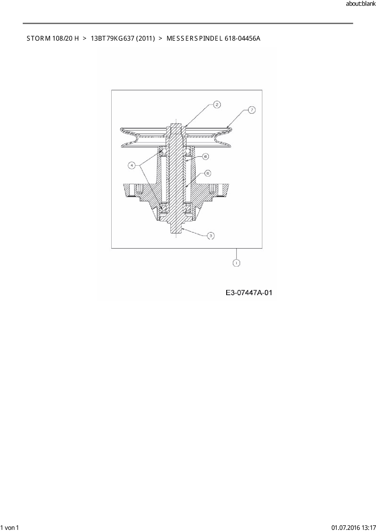 Ersatzteile für Rasentraktor EFCO Storm 108/20 H aus der Zeichnung Messerspindel 618-04456A: