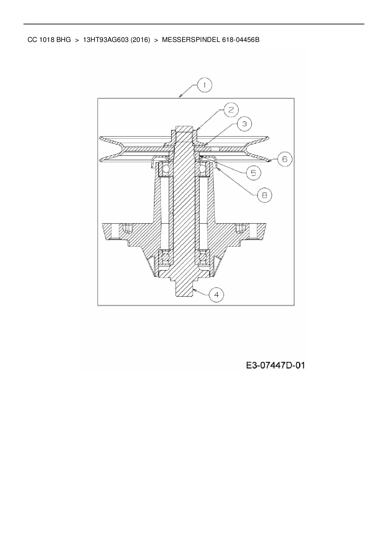Ersatzteile für Rasentraktor Cub Cadet CC 1018 BHG aus der Zeichnung Messerspindel 618-04456B: