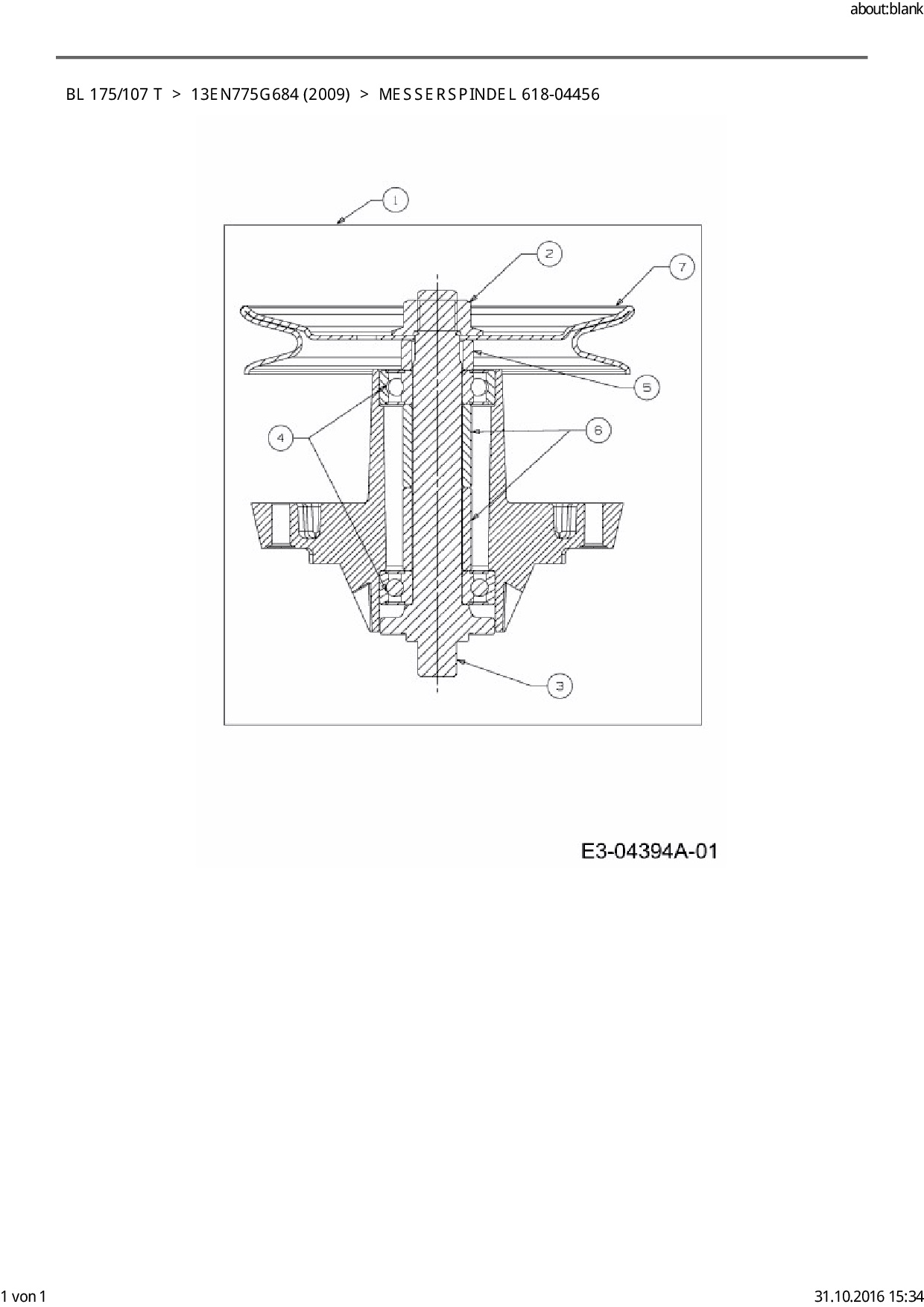Ersatzteile für Rasentraktor Bolens BL 175/107 T aus der Zeichnung Messerspindel 618-04456: